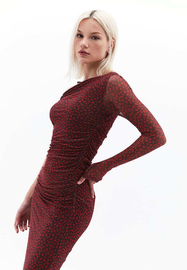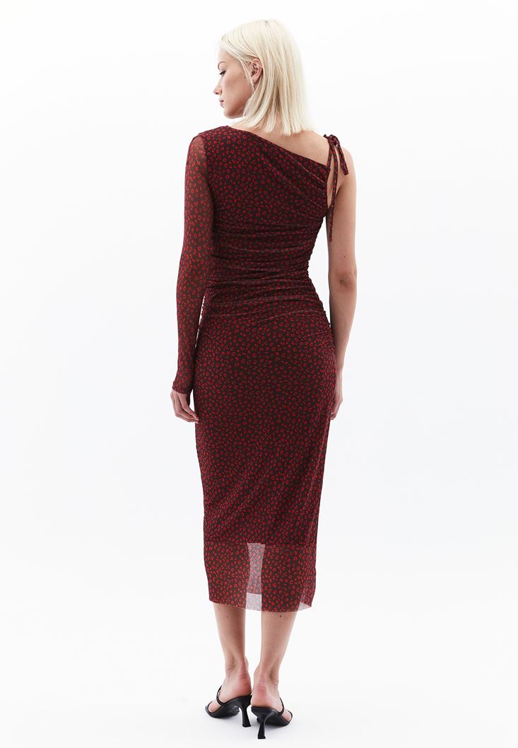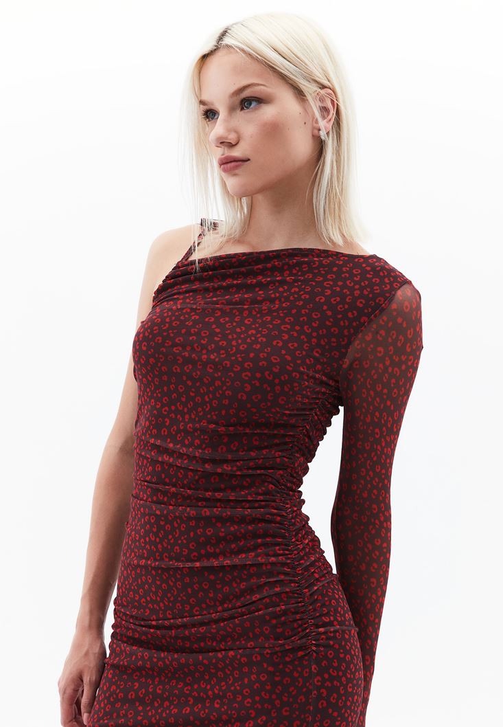 • Bayan Çok Renkli Tek Omuzlu Büzgü Detaylı Elbise