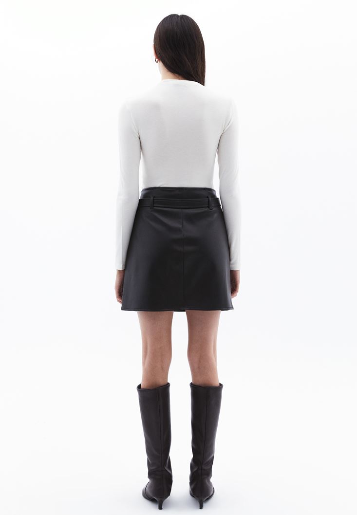 Vegan Deri Kemerli Etek ve Crop Yelek Kombini