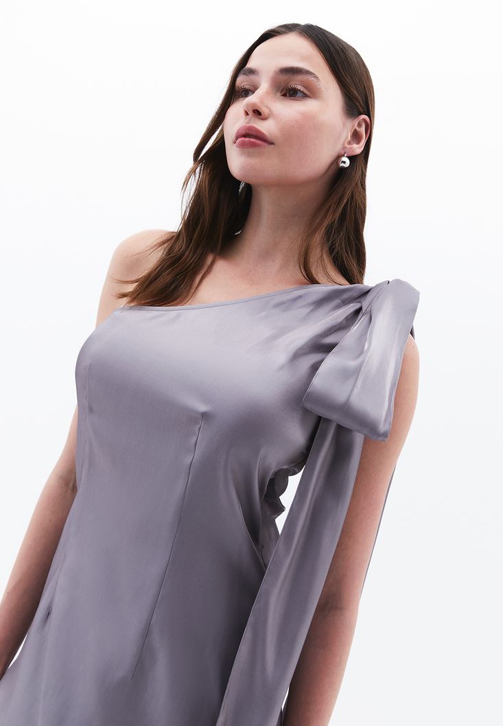 Gri Tek Omuzlu Saten Elbise ( MODAL )