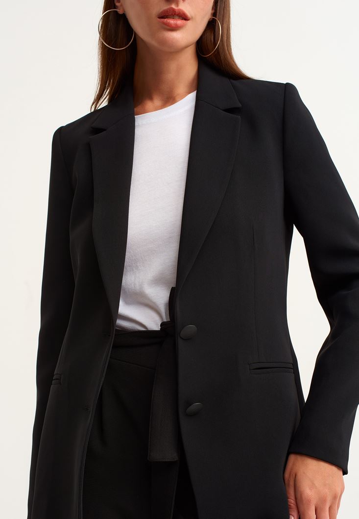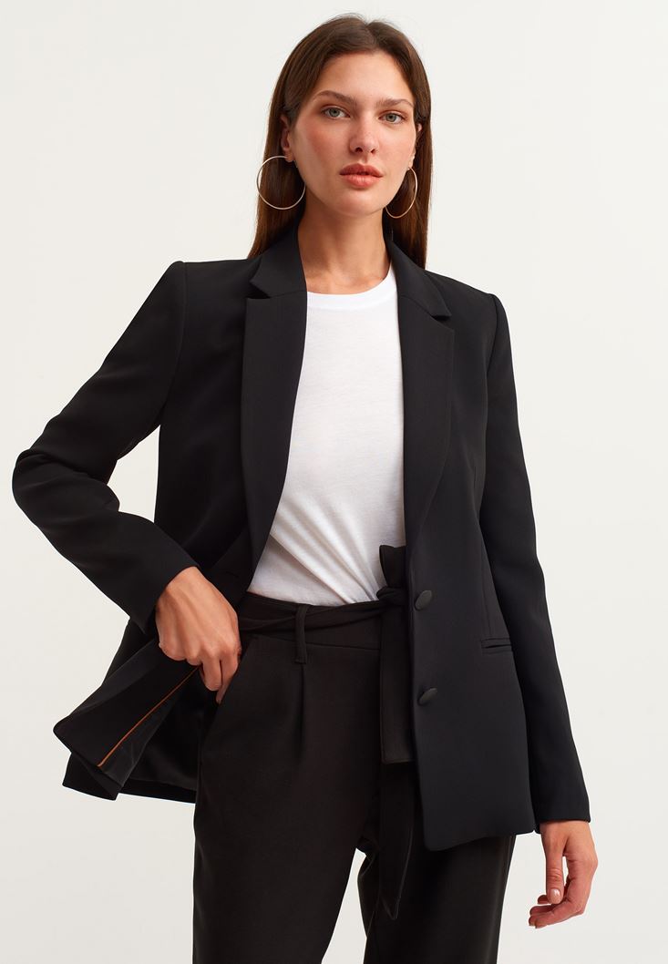 Güçlü ve maskülen kombinlerin vazgeçilmezi olan blazer ceket arayışın için ideal bir parça! Bedene oturan kalıbı ve yumuşak dokusu ile büyüleyen blazer ceket ile harikalar yaratmaya hazır ol! Uzun ve yoğun geçecek iş günlerinde bu ceketten yardım alarak etkileyici bir görünüme ulaşabilirsin... Onu toparlayıcı skinnylerle ve topuklularla birleştirerek her adımında çarpıcı bir etki yaratmak çok hoşuna gidecek. :)