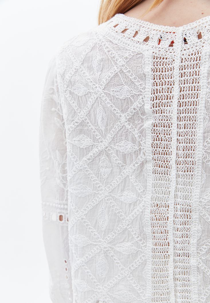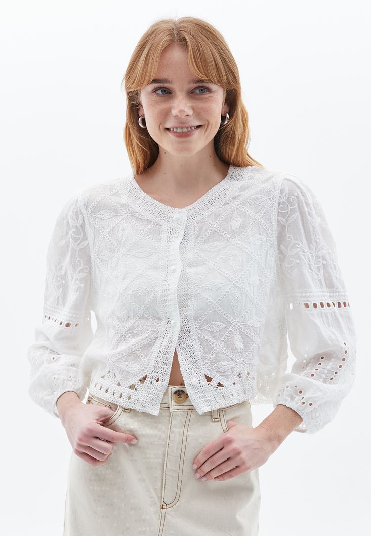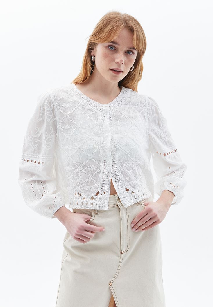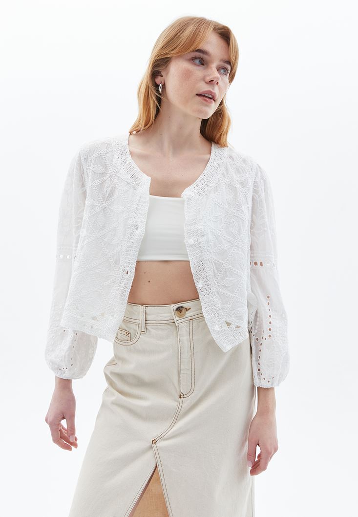 Beyaz Tığ İşi Düğme Detaylı Hırka
