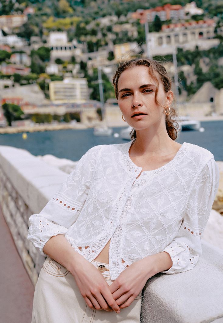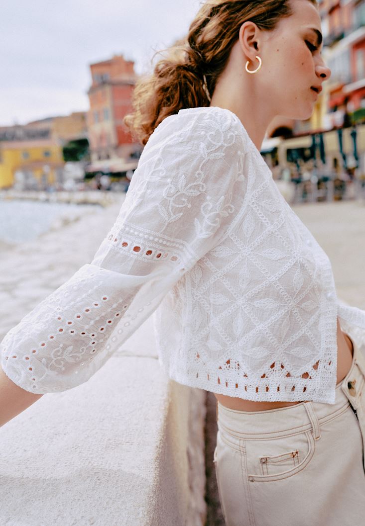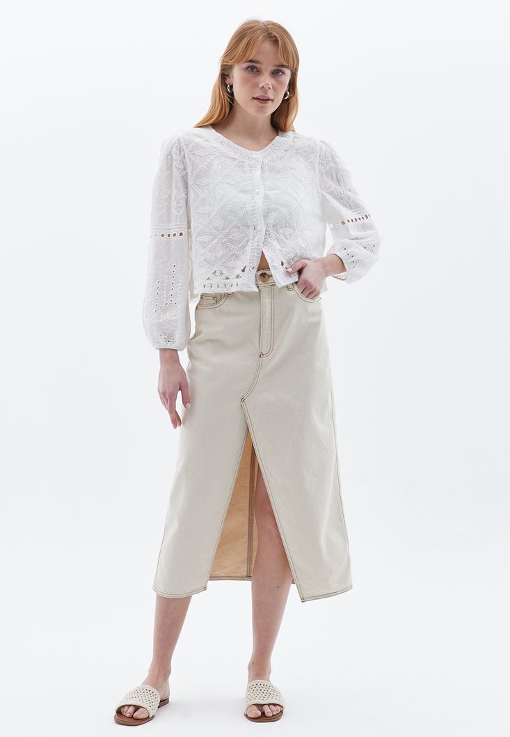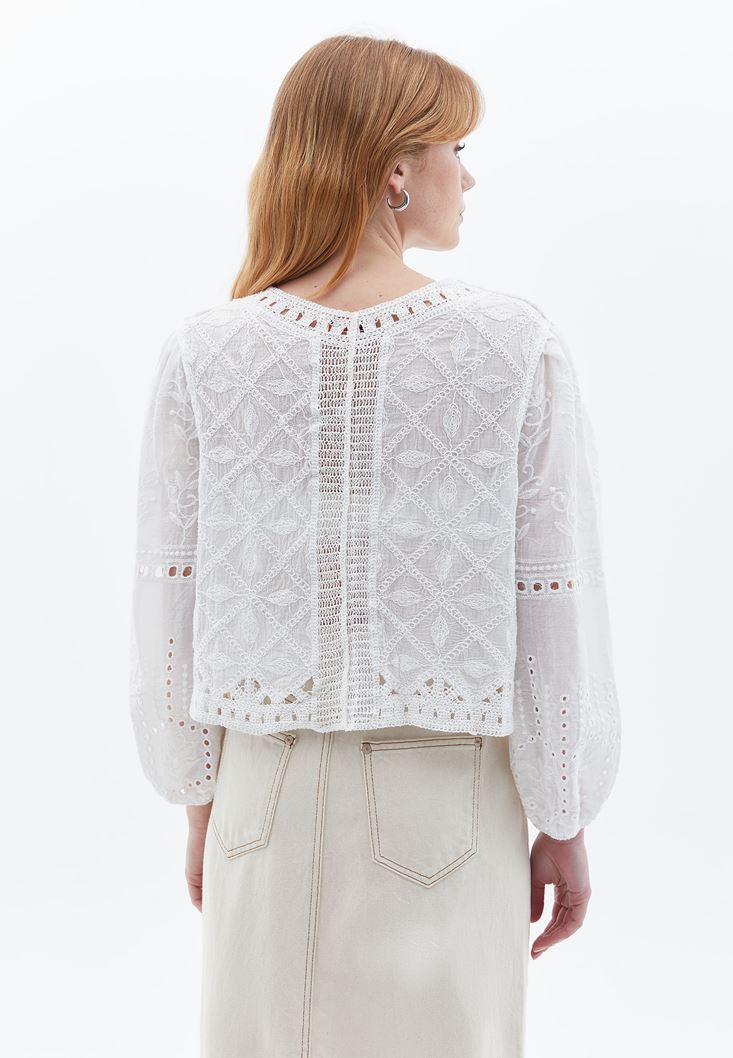 Beyaz Tığ İşi Düğme Detaylı Hırka
