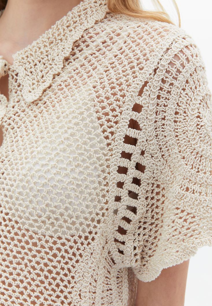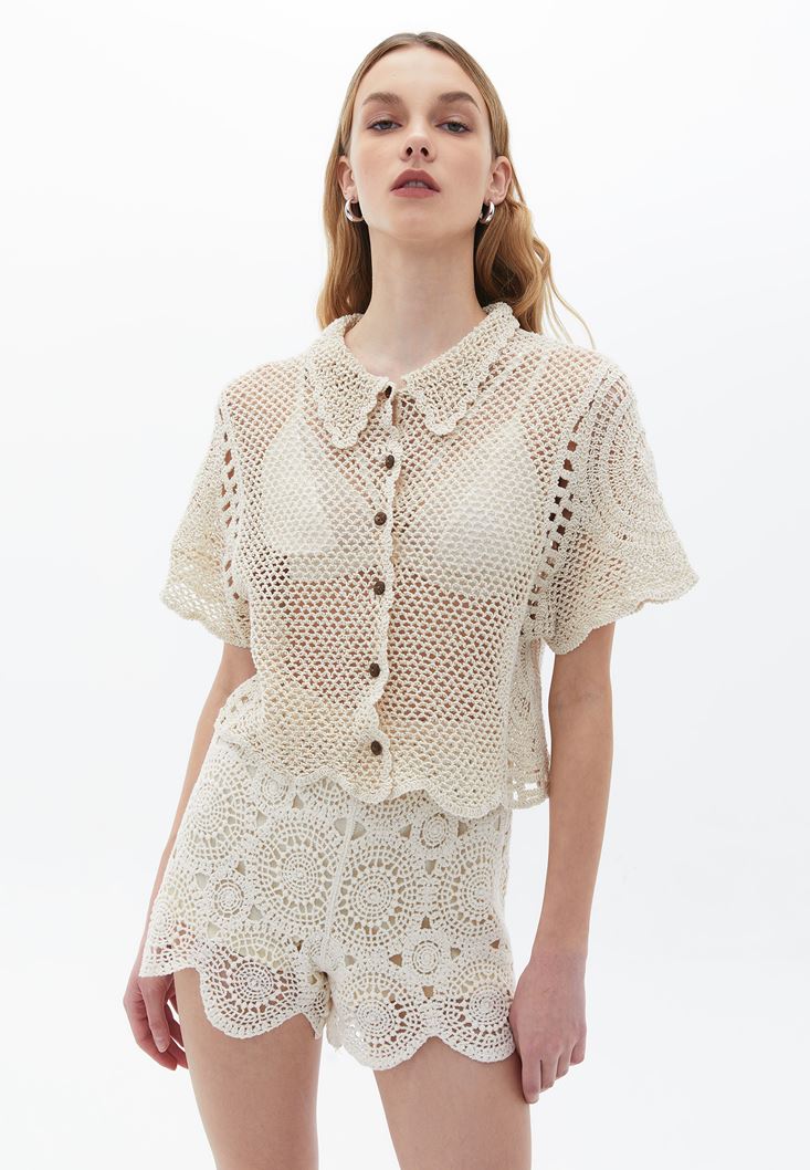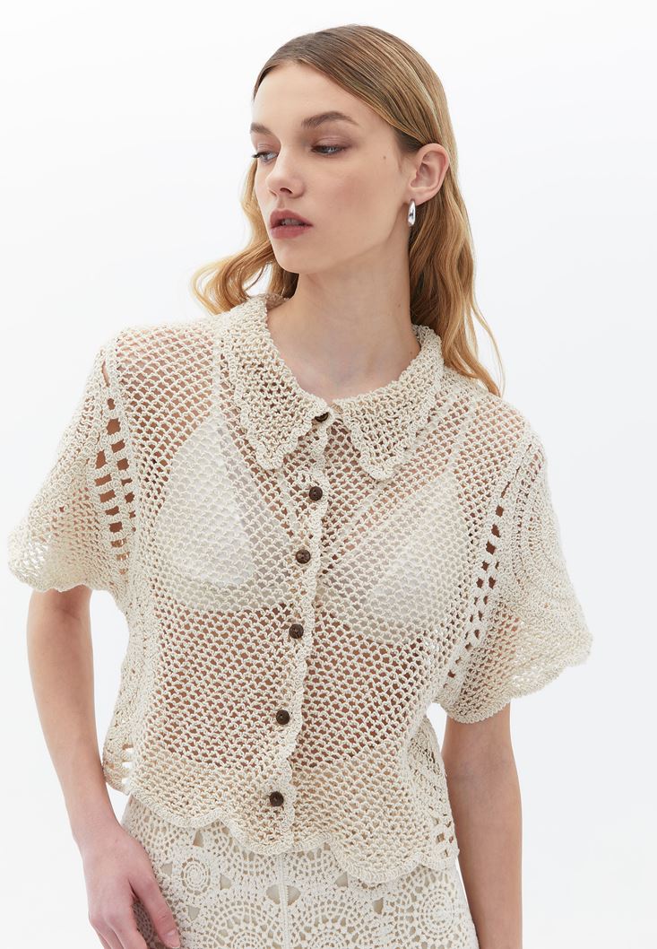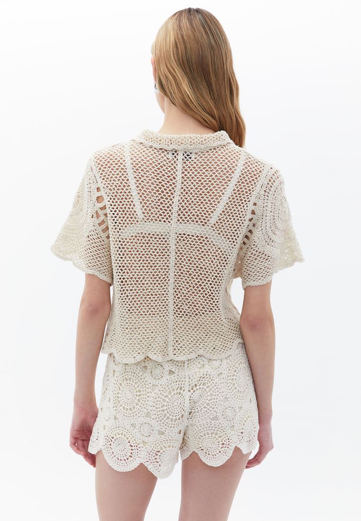 %100 pamuklu doğal doku, tığ işi örgü, bedene yakın fit, kısa kollu.