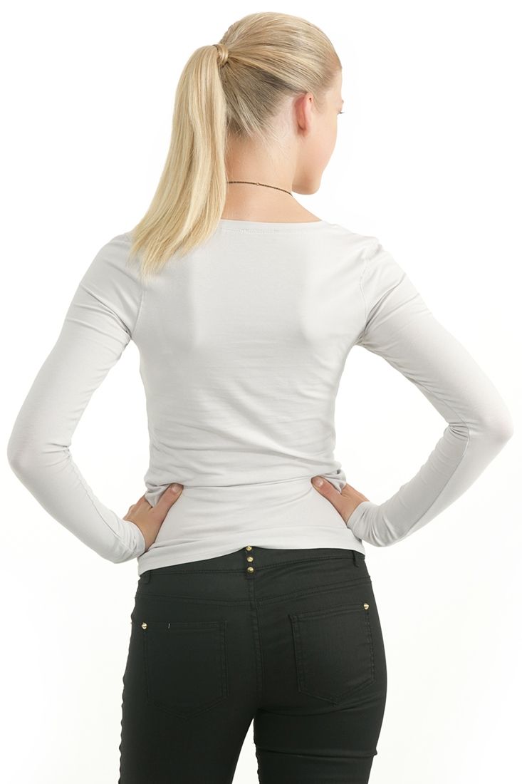 • Bayan Gri U Yaka Uzun Kollu Tişört