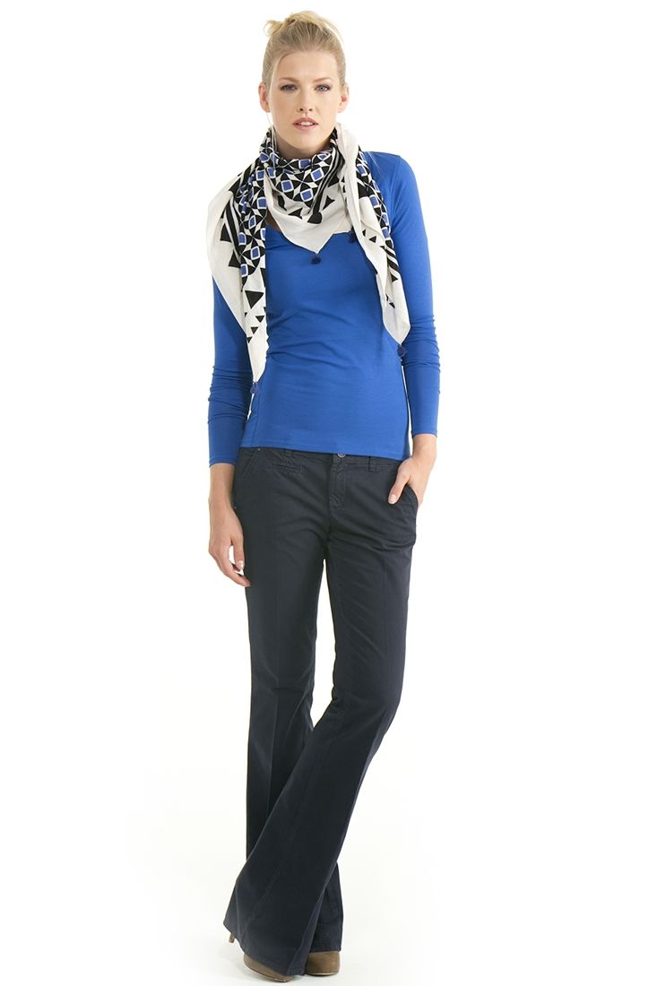 • Bayan Mavi U Yaka Uzun Kollu Tişört