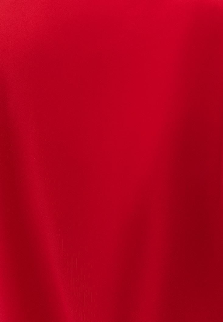 • Bayan Kırmızı Toka Detaylı Asimetrik Kesim Bluz