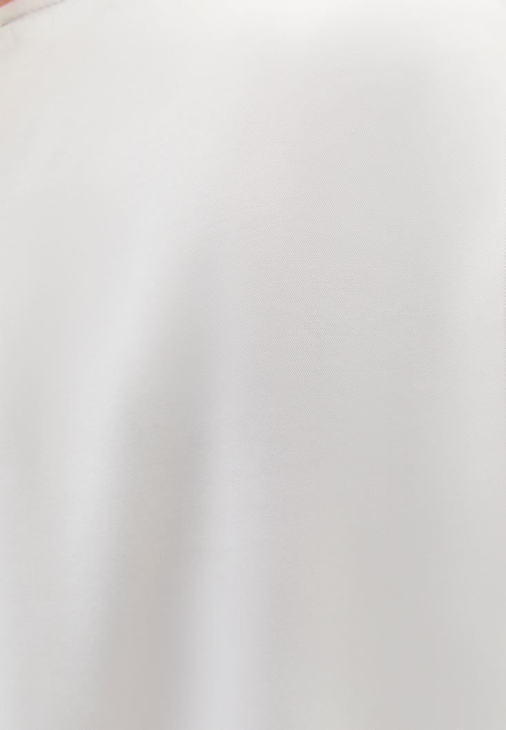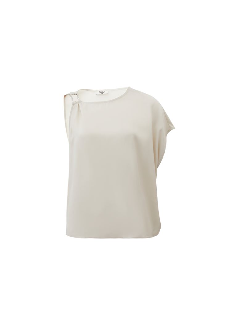 • Bayan Krem Toka Detaylı Asimetrik Kesim Bluz