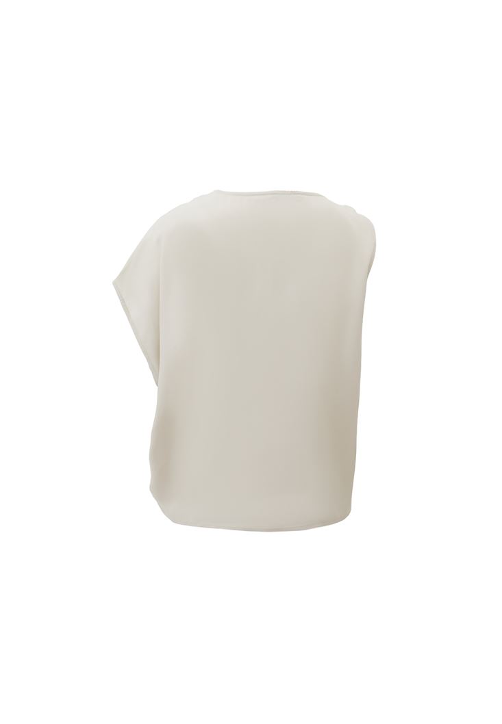 Krem Toka Detaylı Asimetrik Kesim Bluz