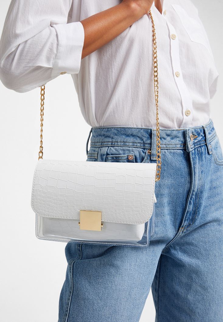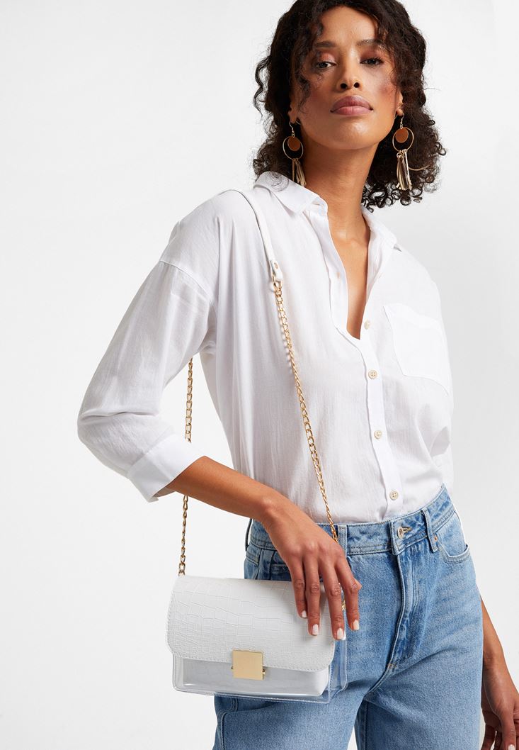 • Bayan Beyaz Toka Detaylı Askılı Çanta