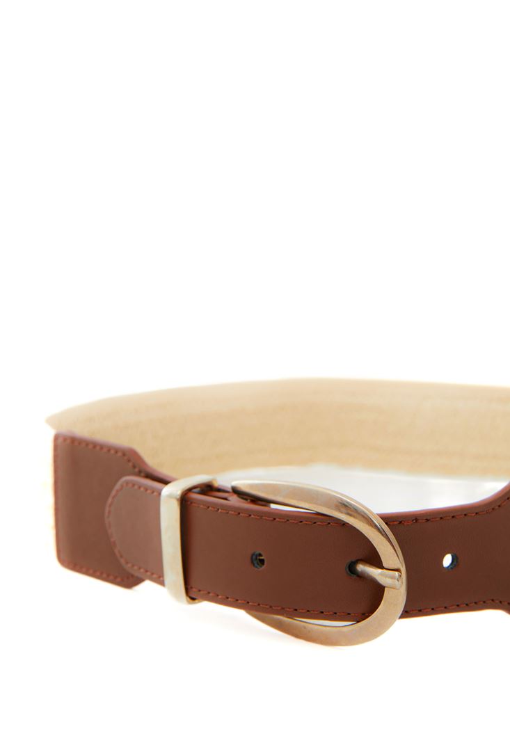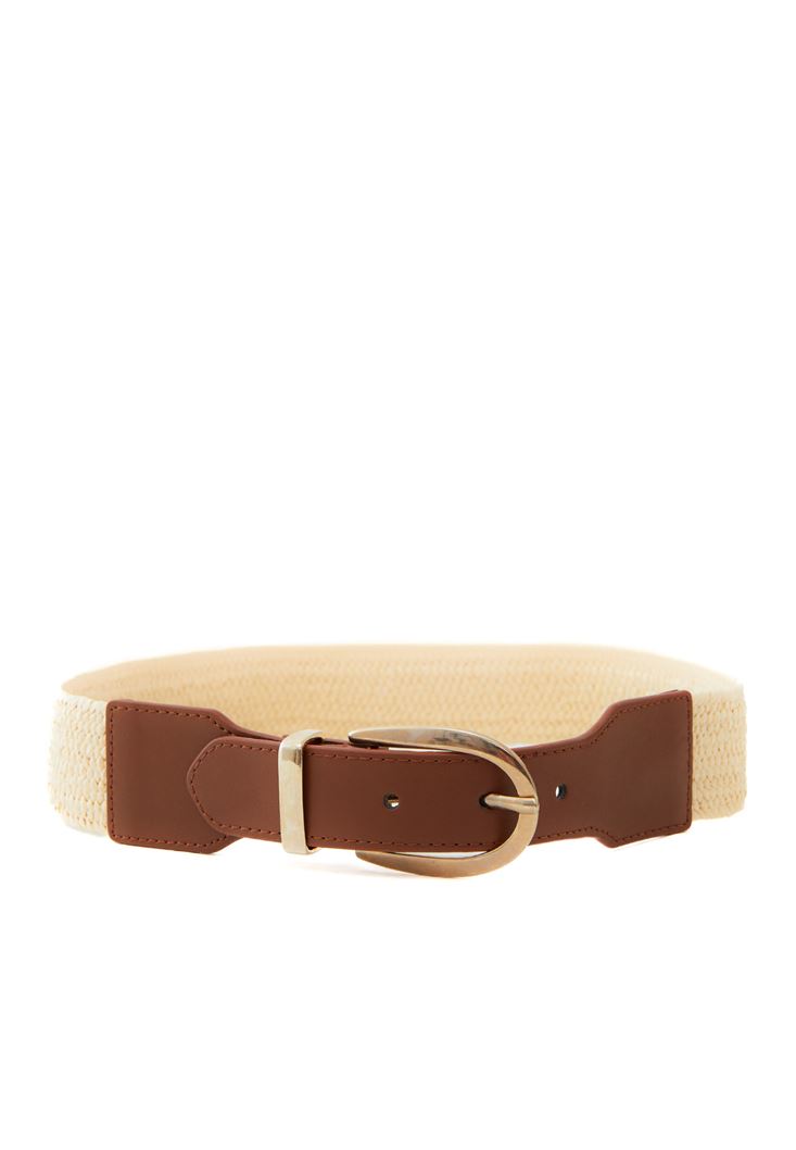 Bej Toka Detaylı Hasır Kemer