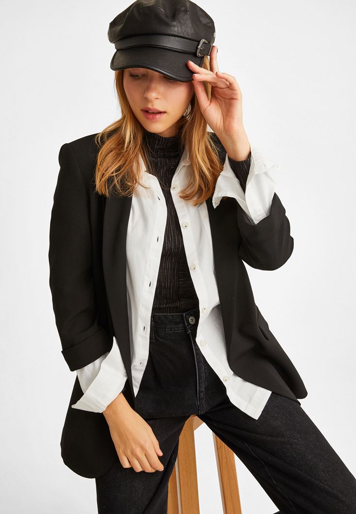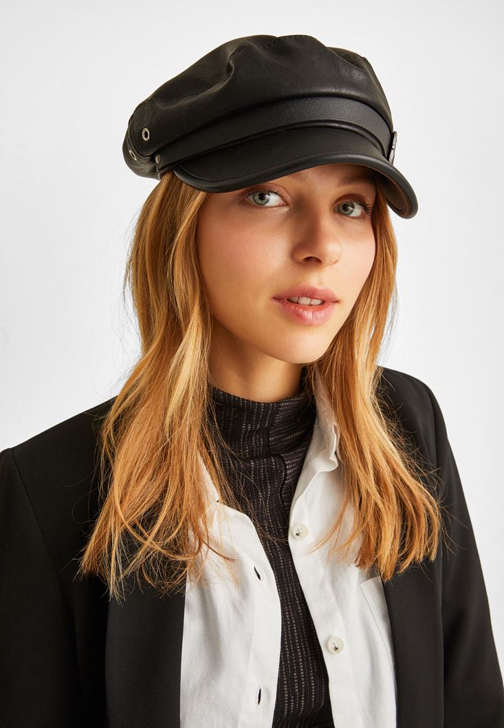 Siyah Toka Detaylı Kasket Şapka
