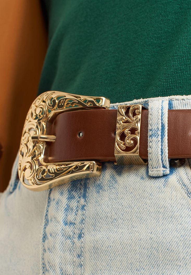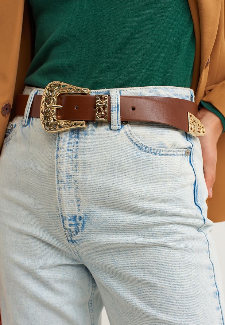 Kahverengi Toka Detaylı Kemer
