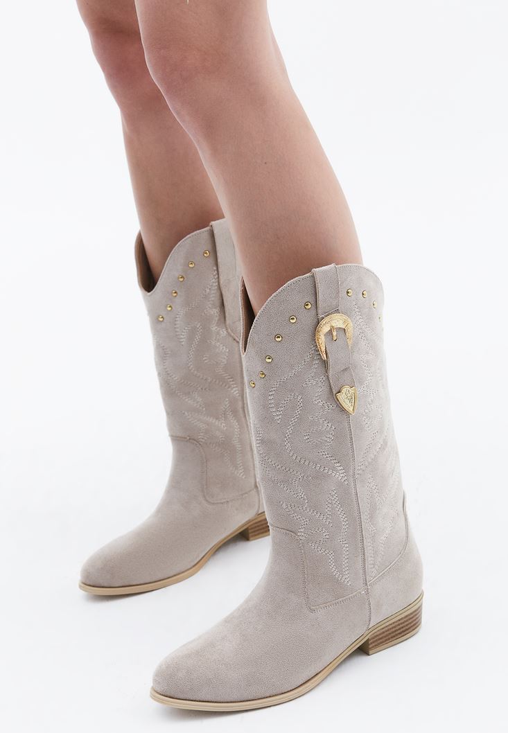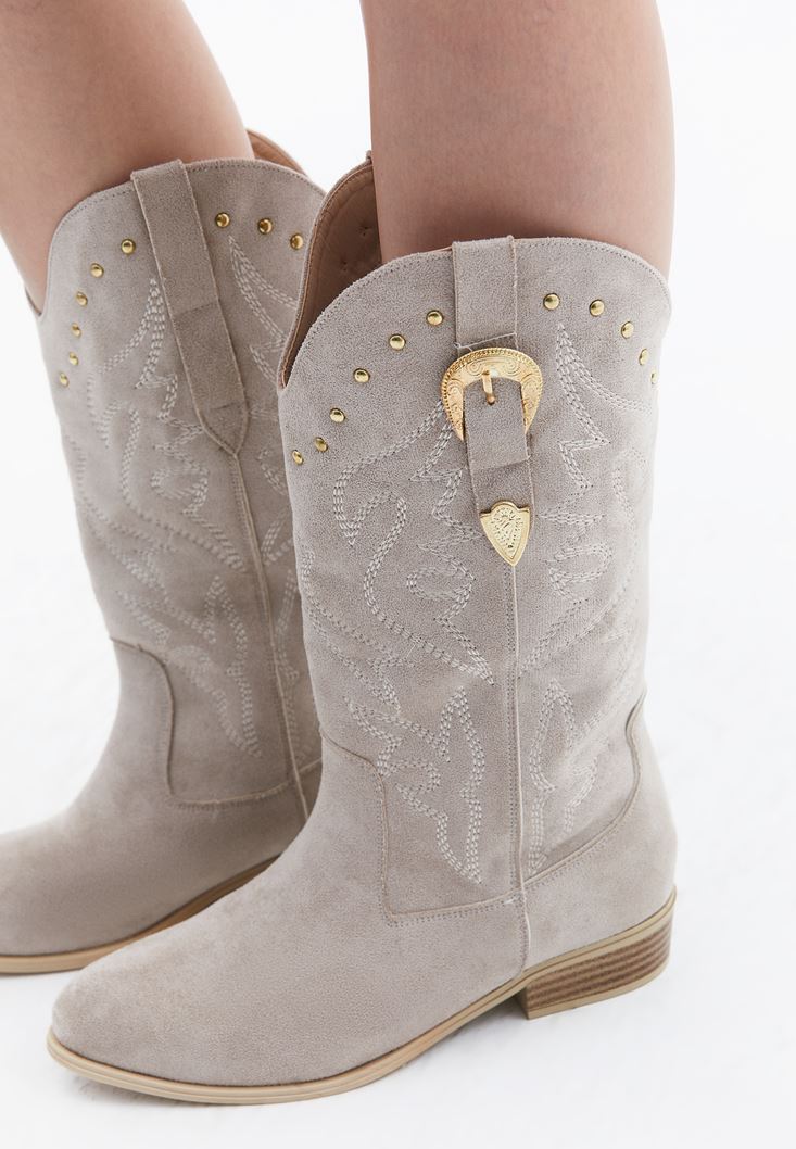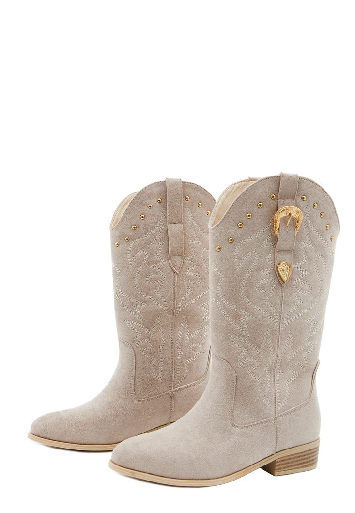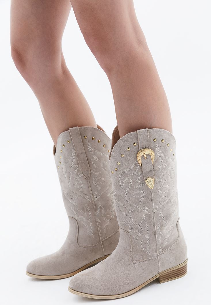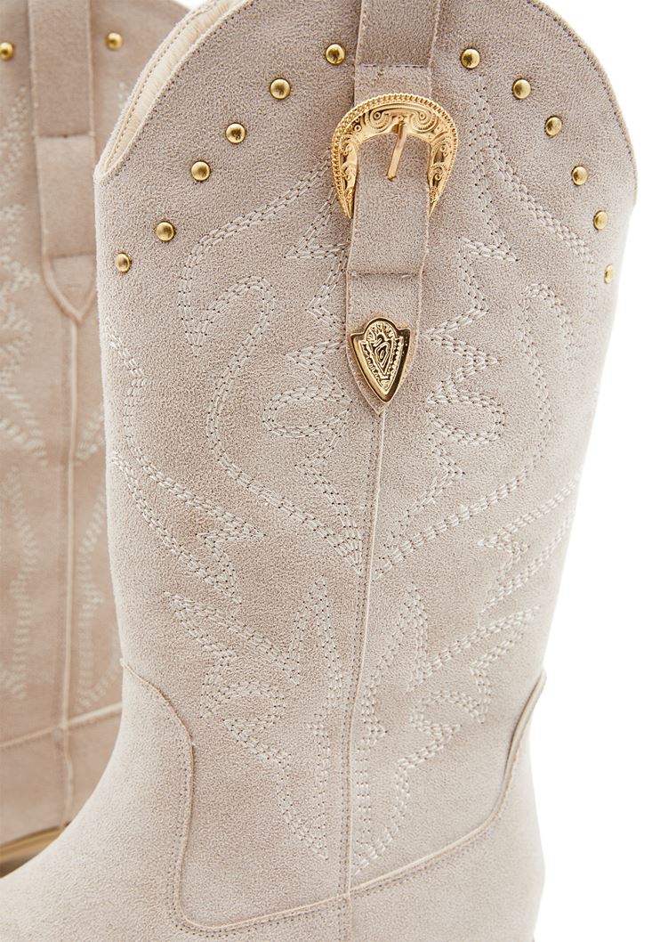 • Bayan Bej Toka Detaylı Kovboy Bot