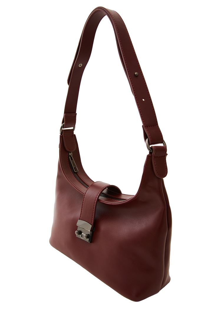 • Bayan Bordo Toka Detaylı Omuz Çantası
