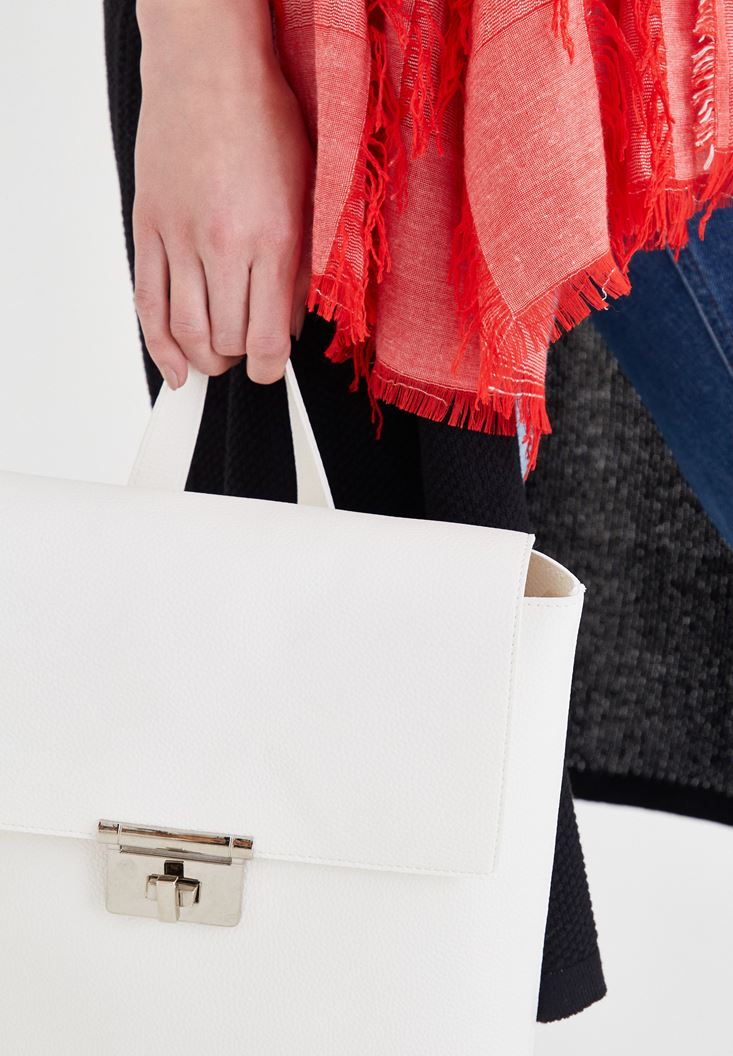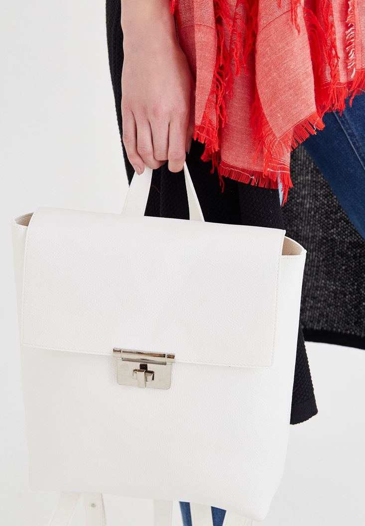 • Bayan Beyaz Toka Detaylı Sırt Çantası