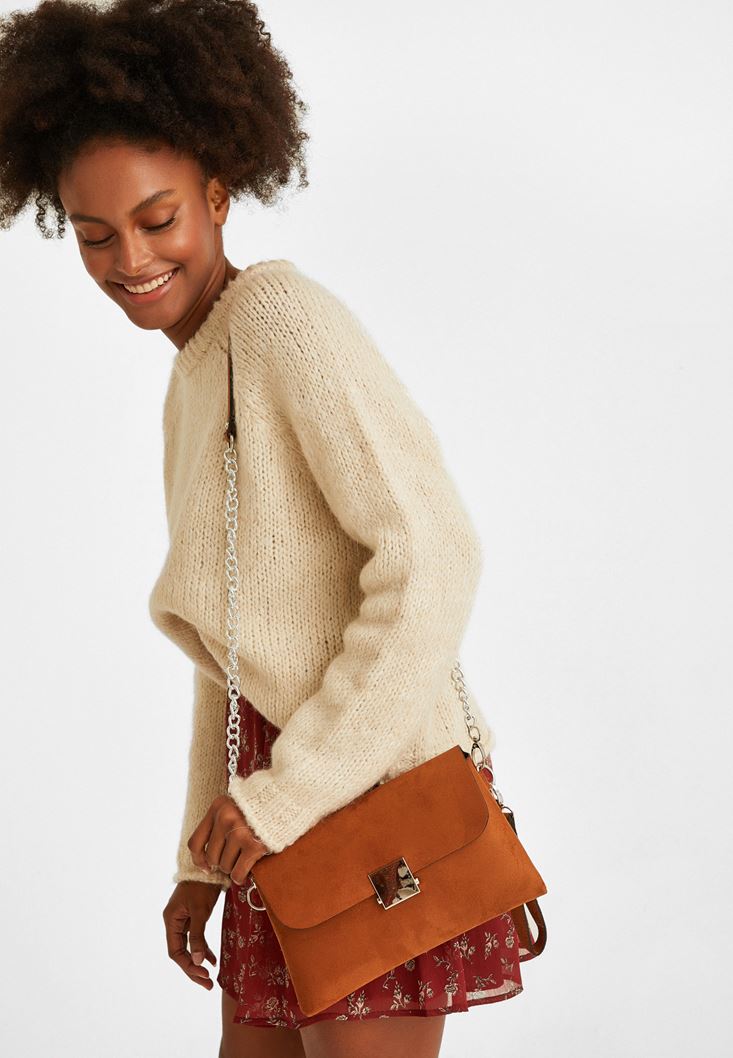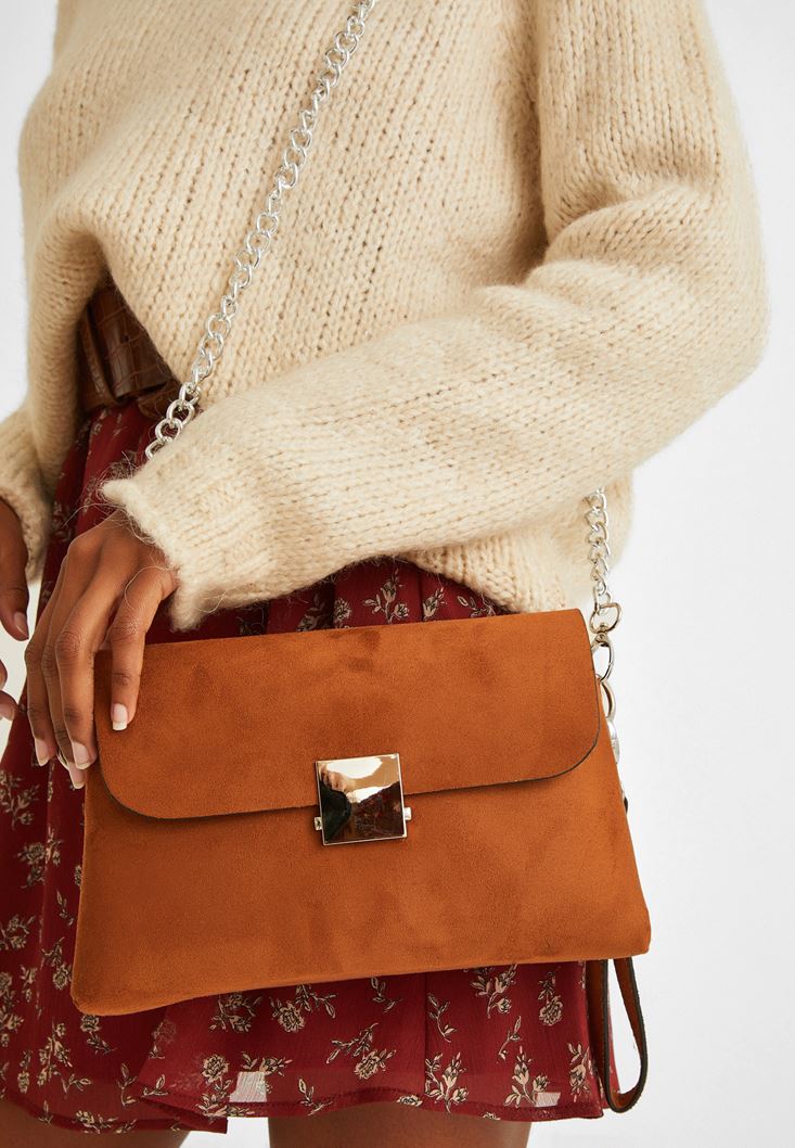 Kahverengi Toka Detaylı Süet Çanta