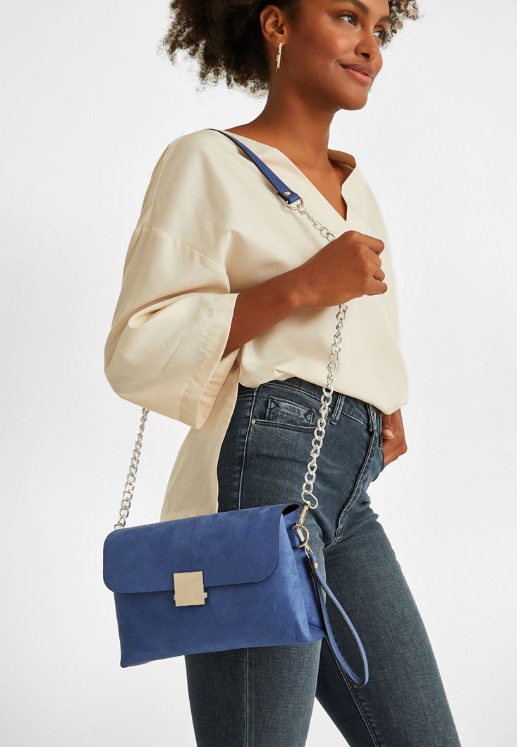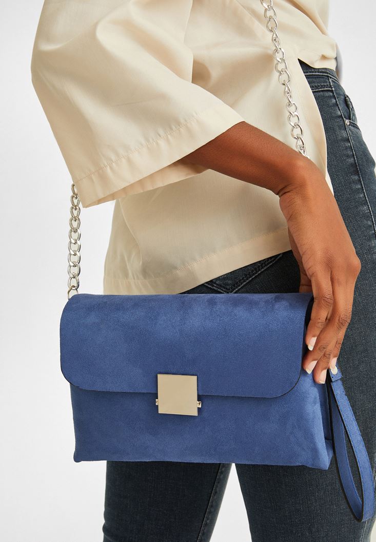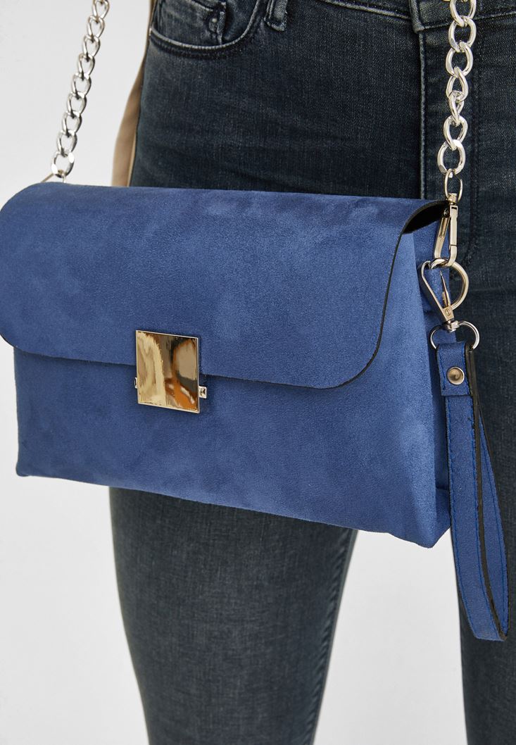 Mavi Toka Detaylı Süet Çanta