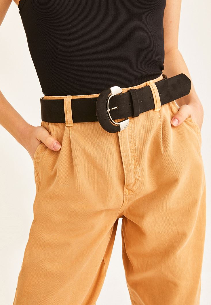 • Bayan Siyah Toka Detaylı Süet Kemer