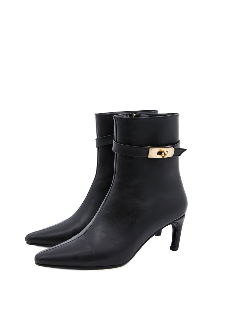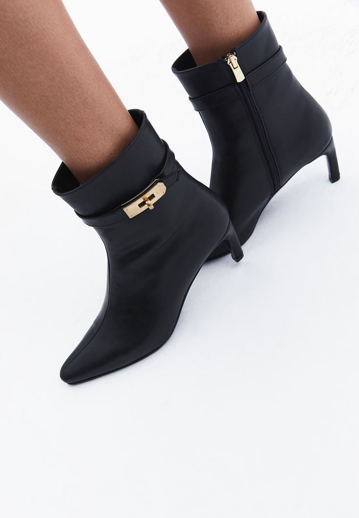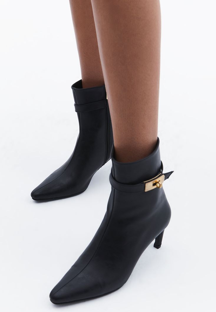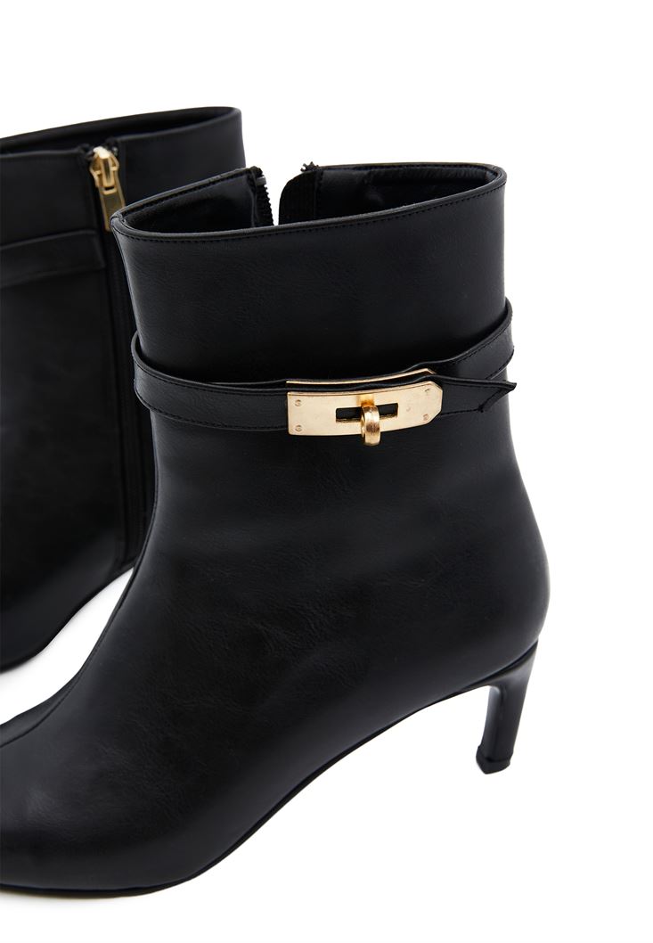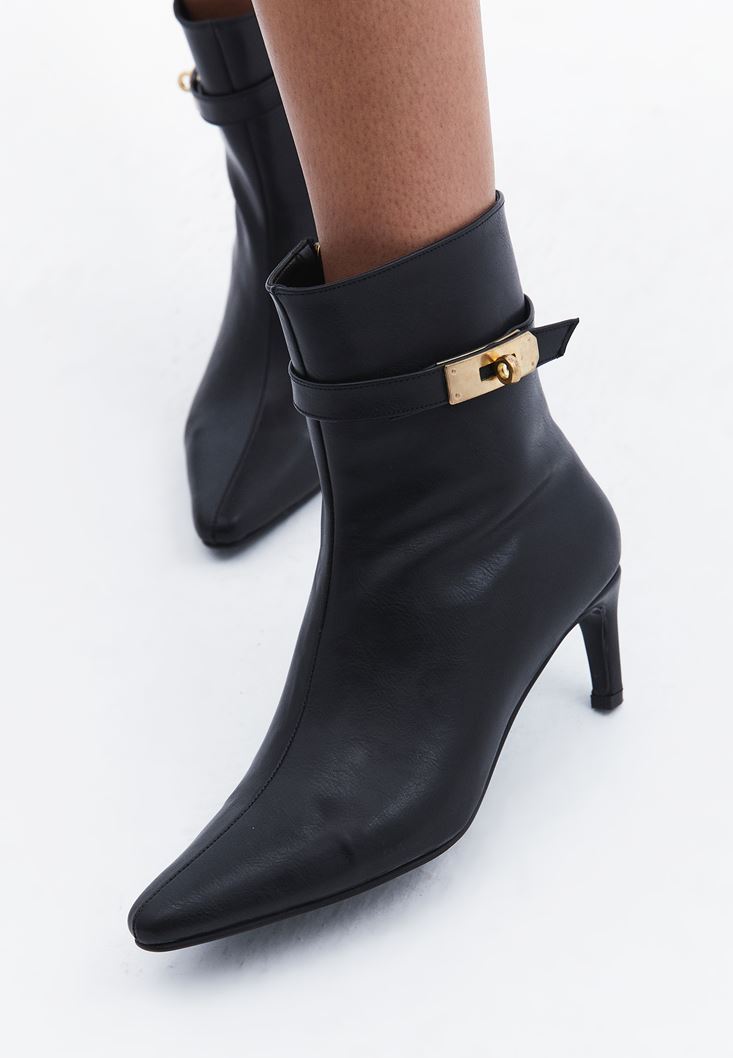 Siyah Toka Detaylı Topuklu Bot