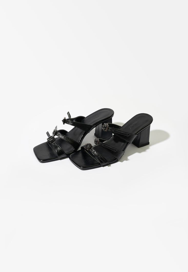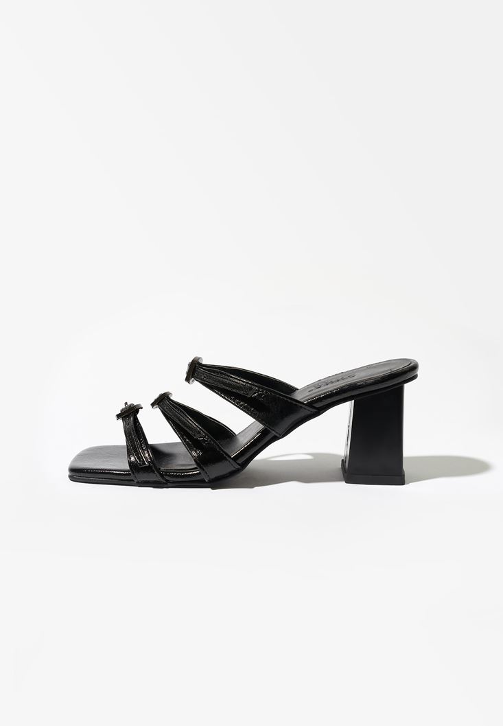 Siyah Toka Detaylı Topuklu Terlik