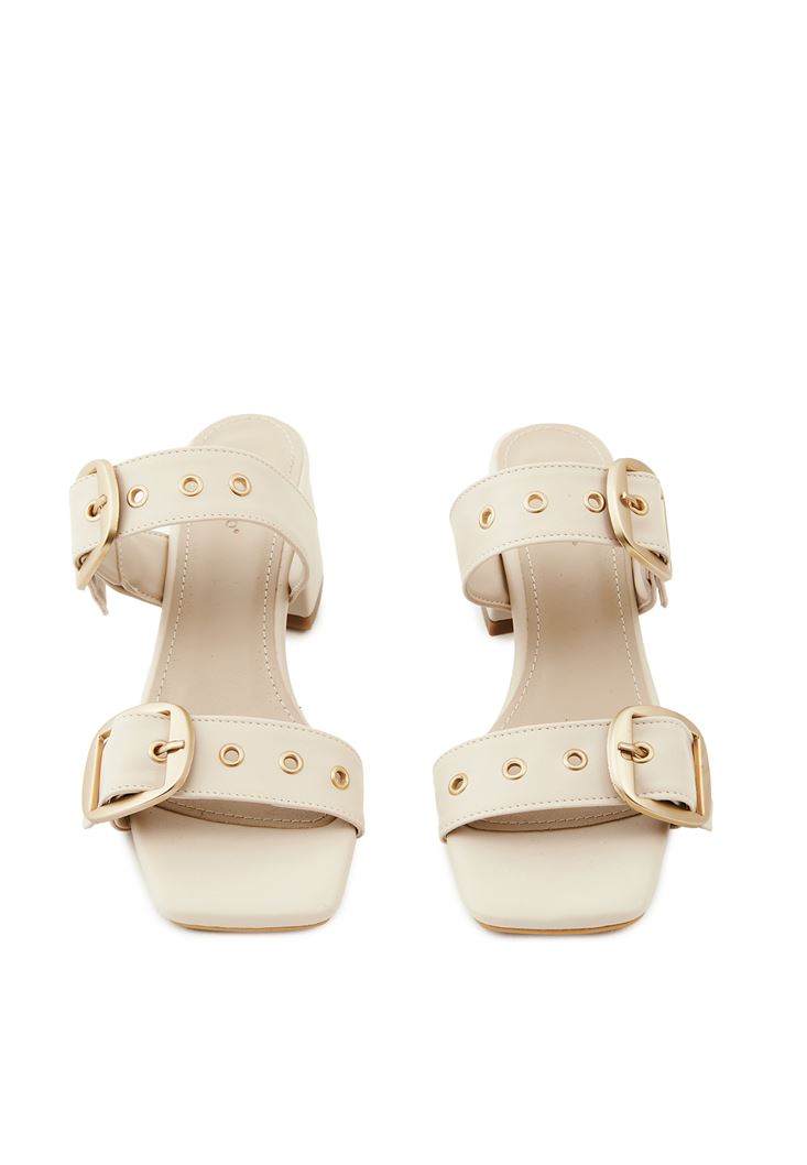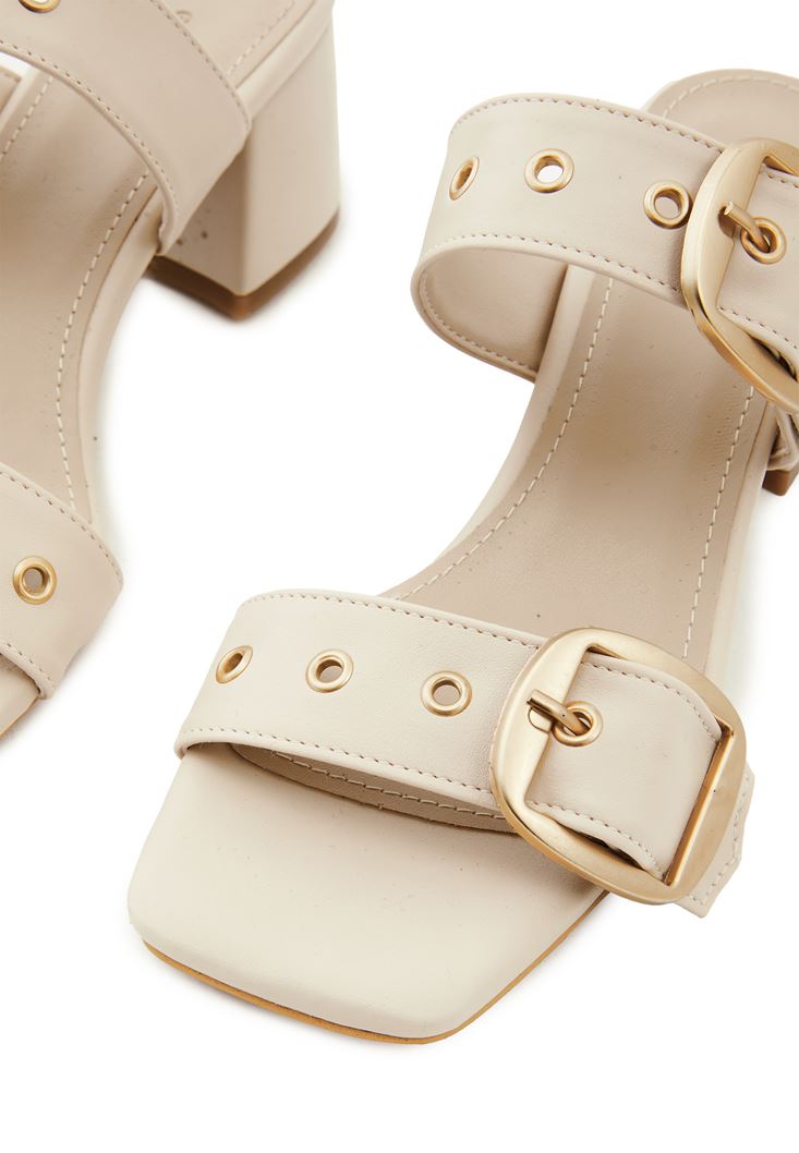 Bej Toka Detaylı Topuklu Terlik