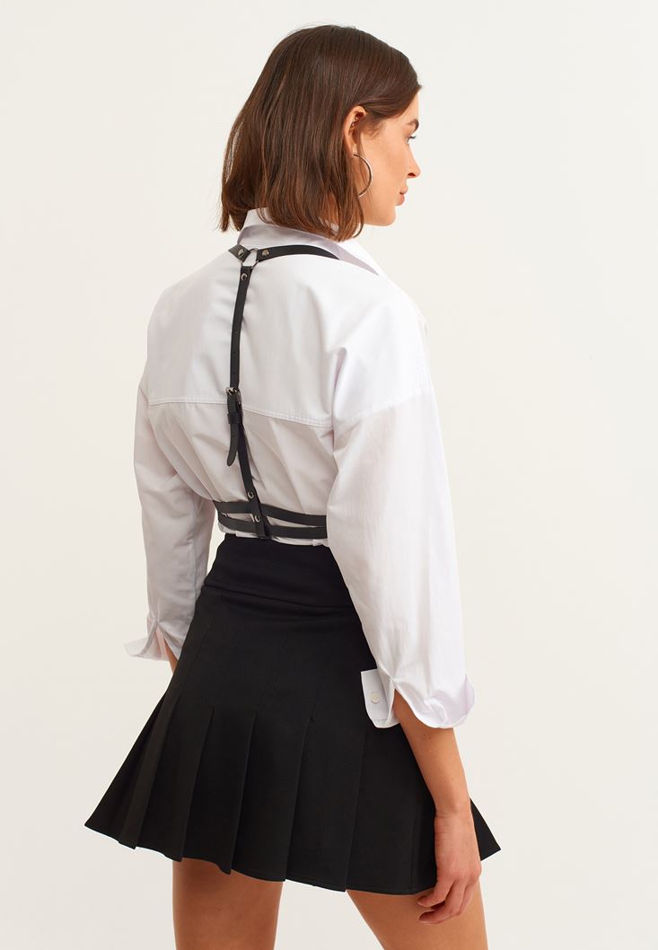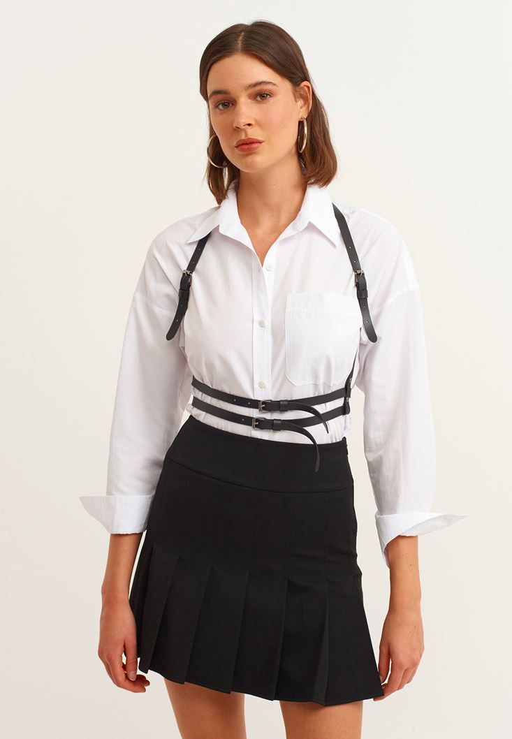• Bayan Siyah Toka Detaylı Vücut Kemeri