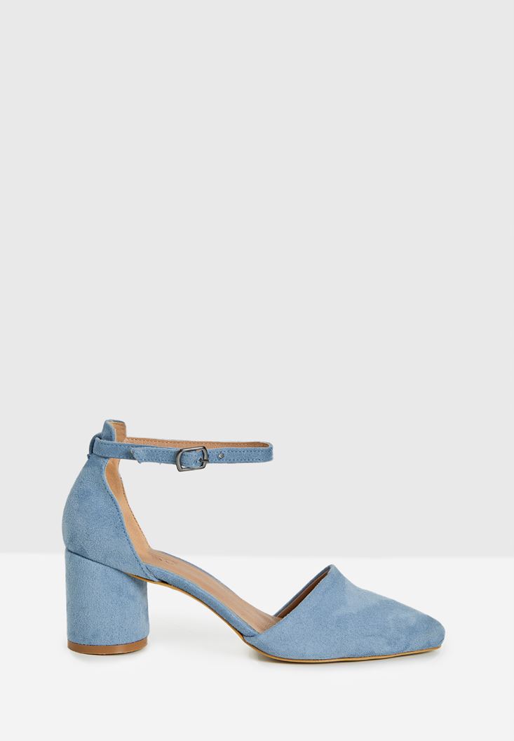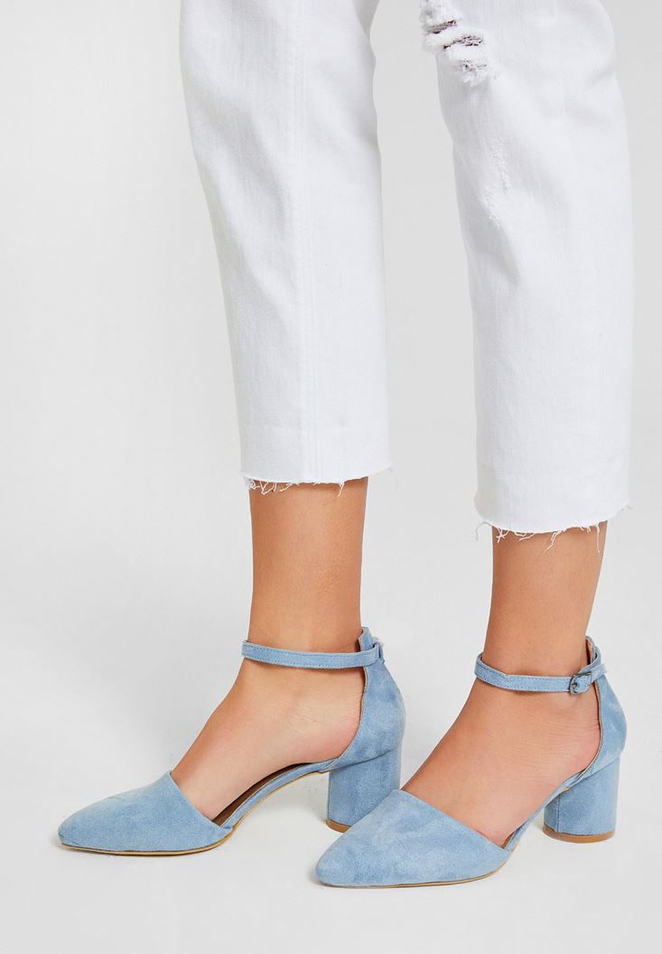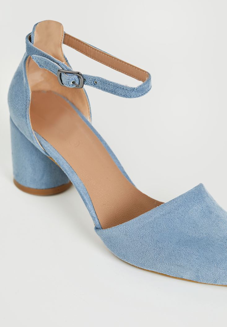 • Bayan Mavi Toka Detaylı Yuvarlak Topuklu Ayakkabı
