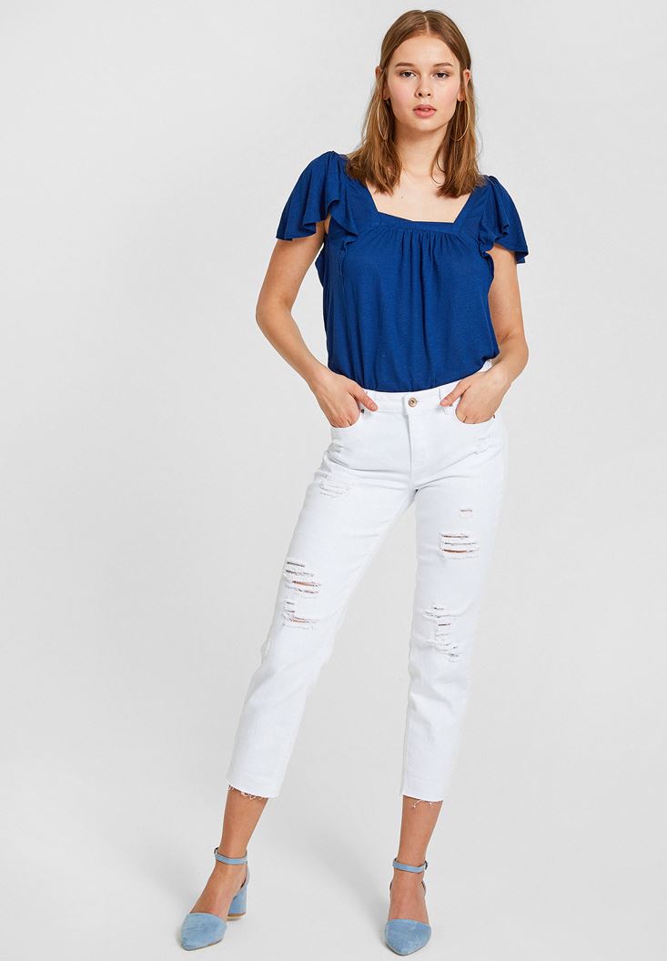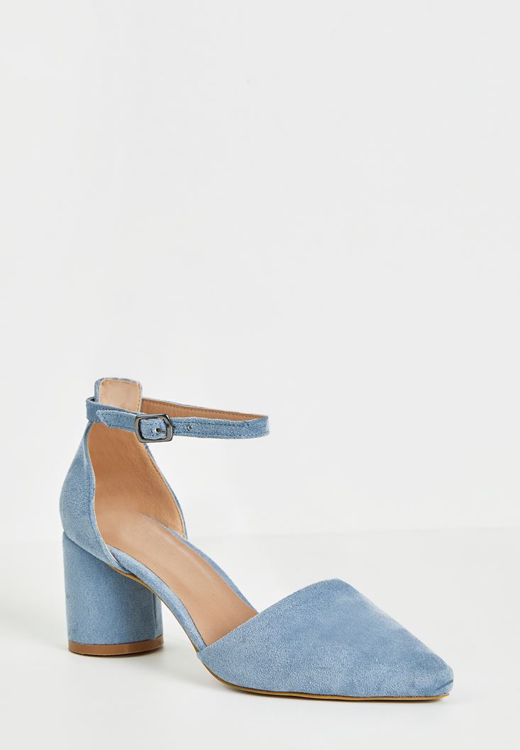 Mavi Toka Detaylı Yuvarlak Topuklu Ayakkabı