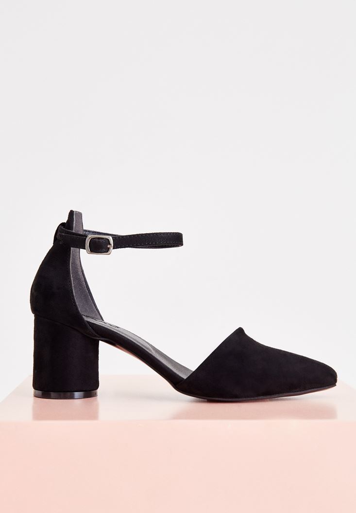 Siyah Toka Detaylı Yuvarlak Topuklu Ayakkabı