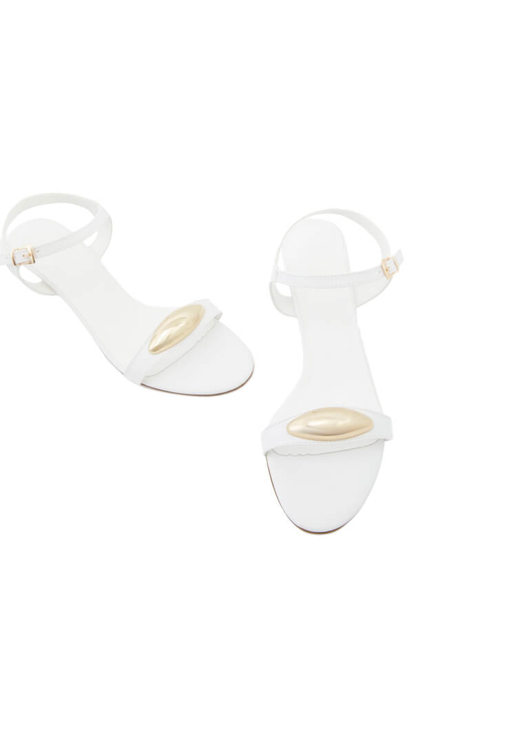 • Bayan Beyaz Tokalı Topuklu Ayakkabı