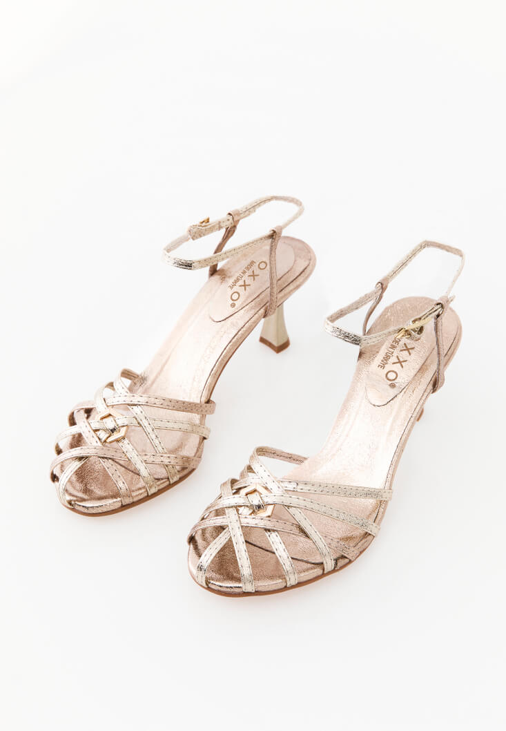 • Bayan Altın Tokalı Topuklu Ayakkabı
