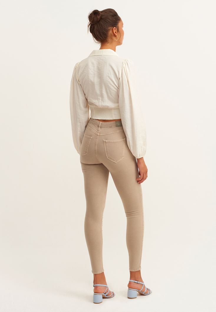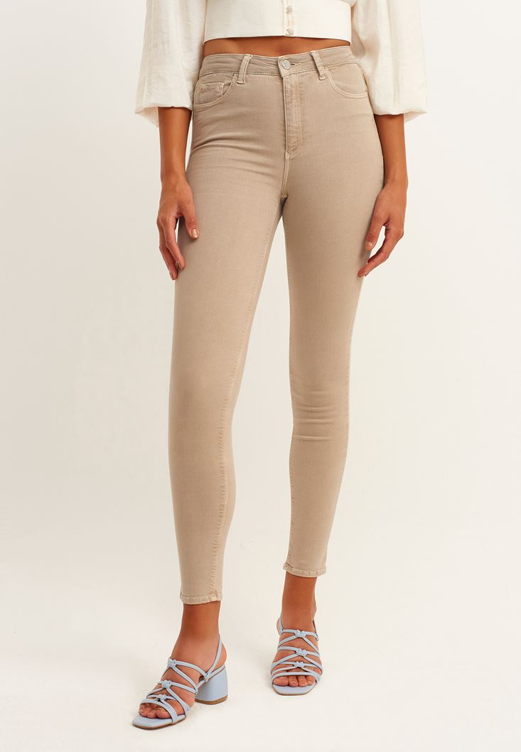 Bej Toparlayıcı Etkili Skinny Pantolon ( TENCEL™ )