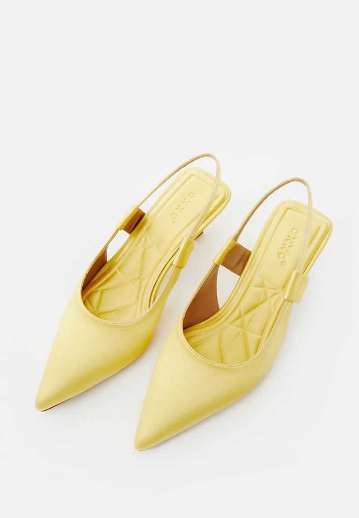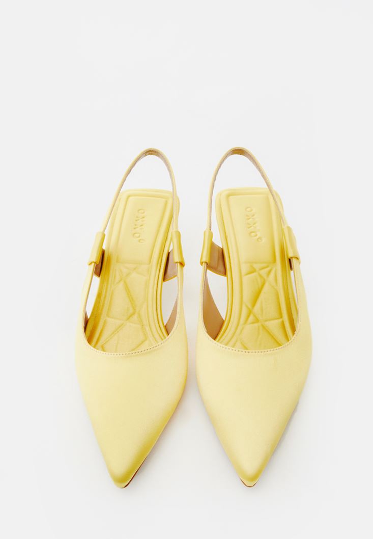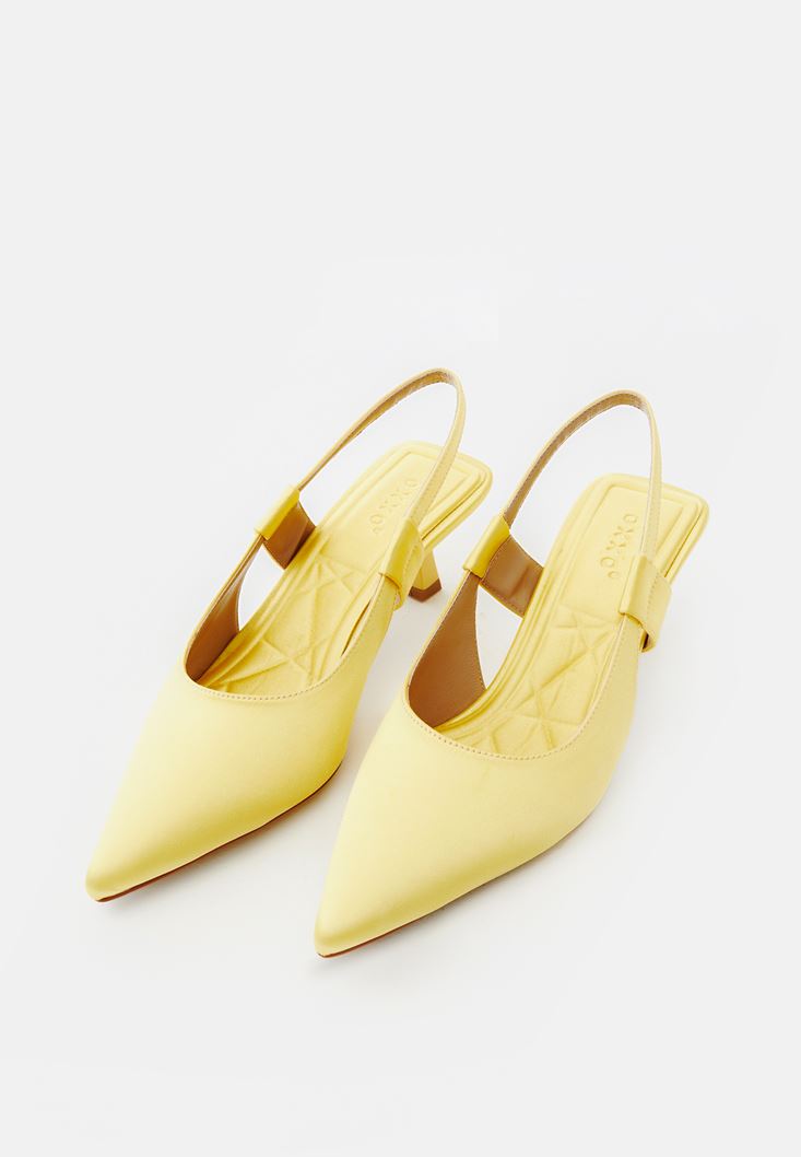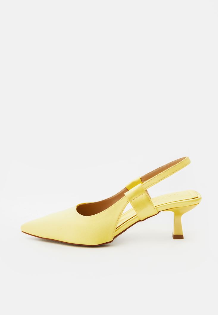• Bayan Sarı Topuklu Saten Ayakkabı
