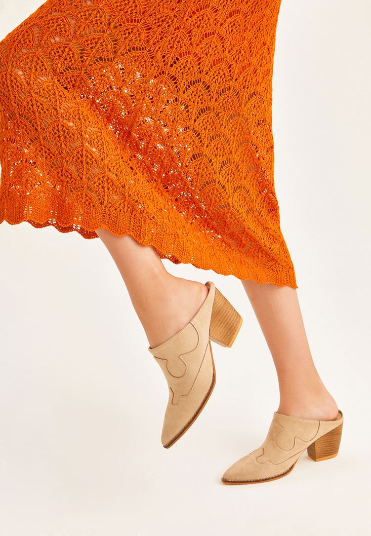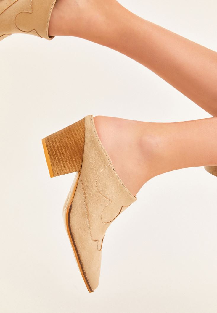 Topuklu Terlik modeli, deri dokusu ve western etkisi yaratan görünümü ile yeni sezonu karşılıyor. Kadın terlik modeli, topuklu yapısı ve motifli dikişleri ile oldukça dikkat çekiyor. Topuklu terlik modeli ile trendleri takip ederken harika kombinler yapabilirsiniz. Boru veya dar paçalı pantolonlarla kullanabileceğiniz kadın terlik modeliyle her ortamda fark yaratabilirsiniz. Topuklu terlik modelinin dokusuyla uyum yakalamak için deri çantalar tercih edebilirsiniz. Oxxo'nun hoş dokularla ve farklı ayrıntılarla sizlere sunduğu kadın topuklu ayakkabı modelleri ile moda dünyasının ritmini yakalayabilirsiniz.