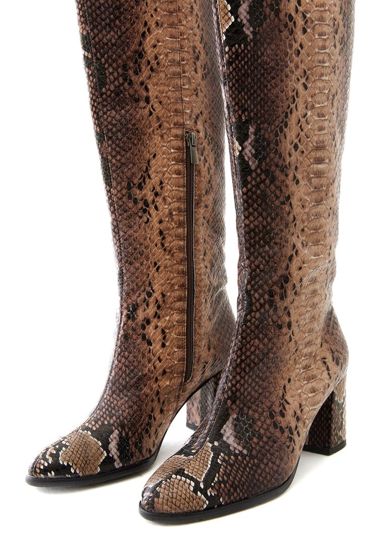 • Bayan Çok Renkli Topuklu Uzun Çizme