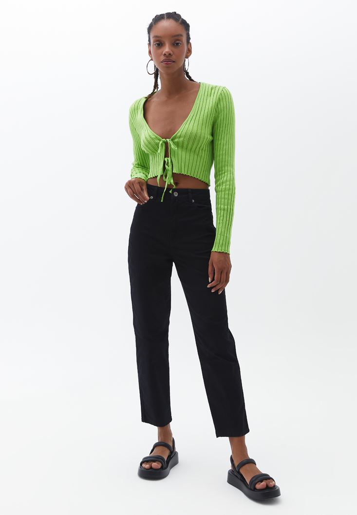Triko Hırka ve Mom-Fit Pantolon Kombini