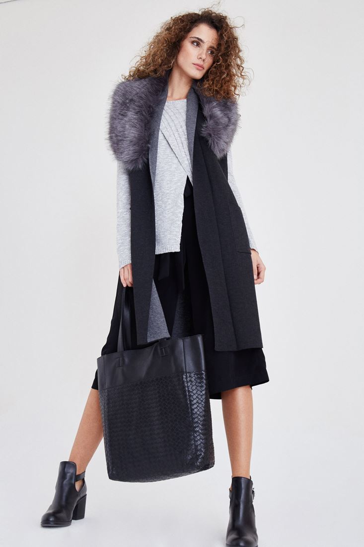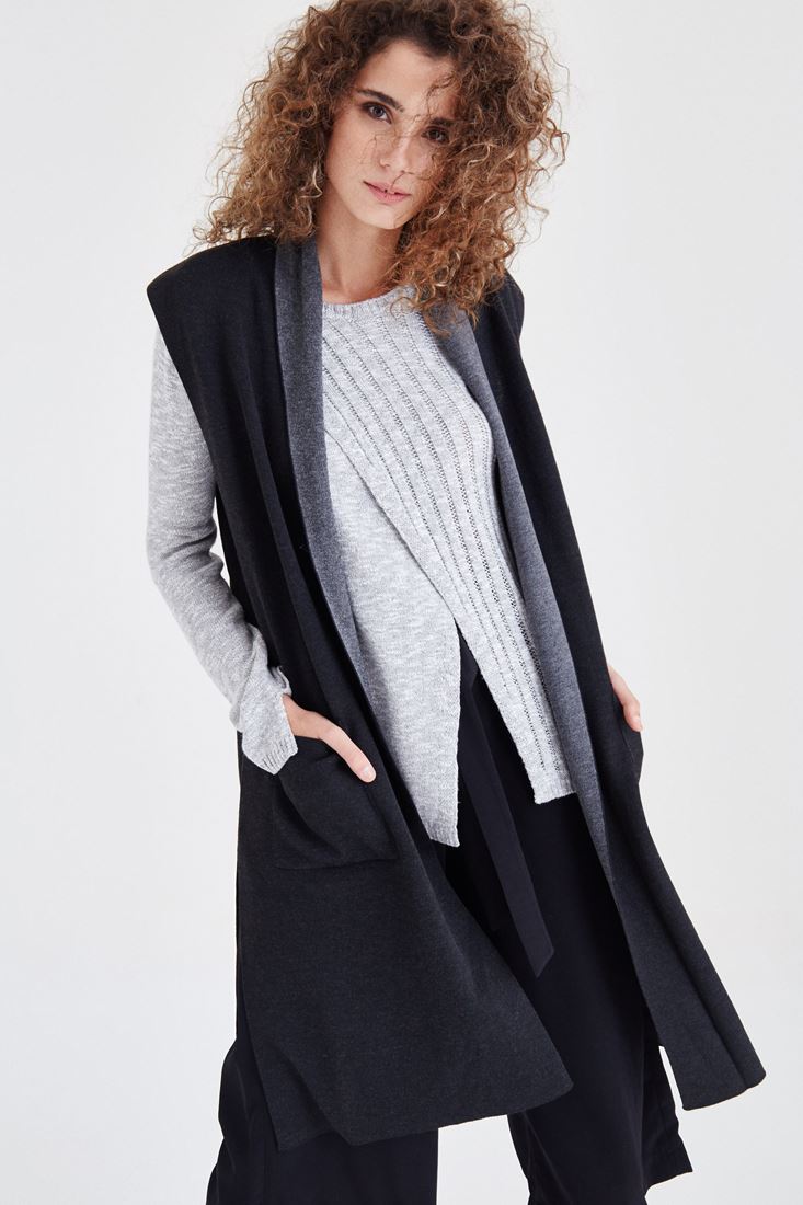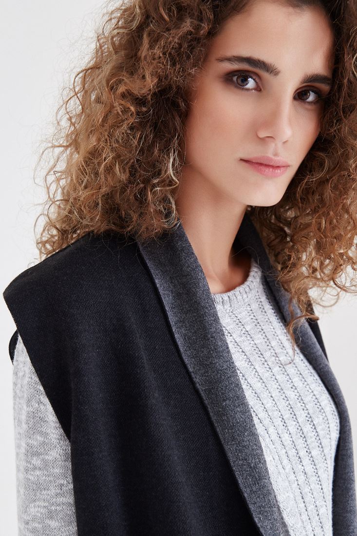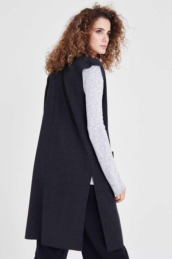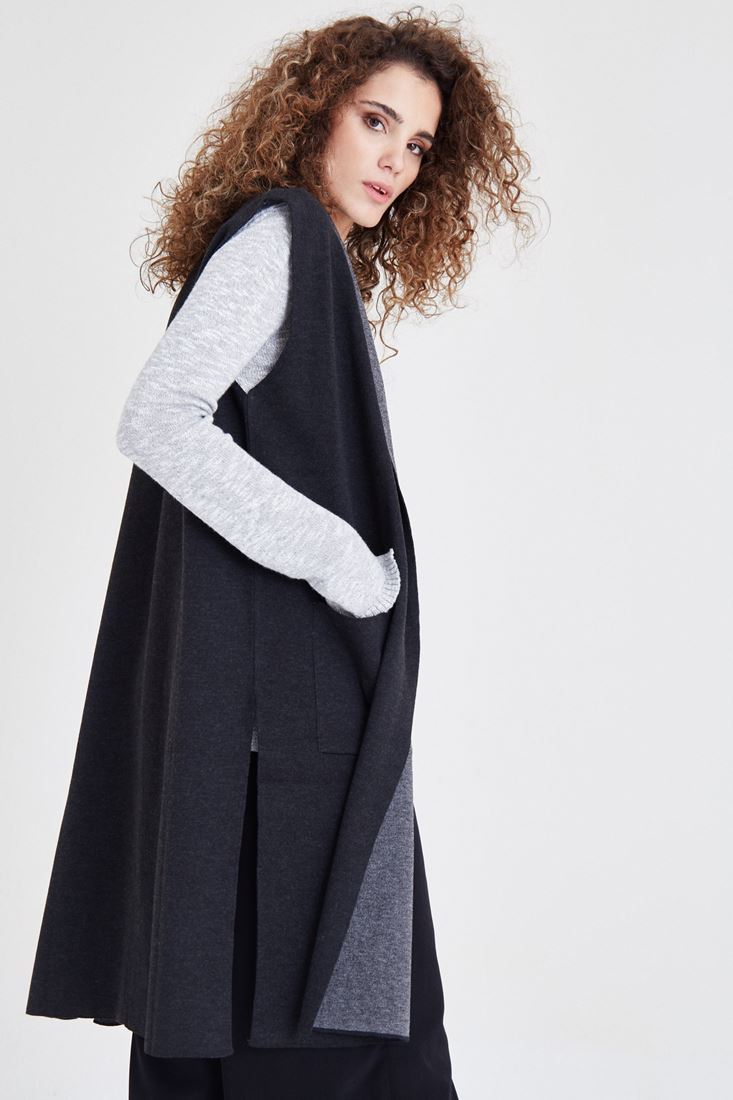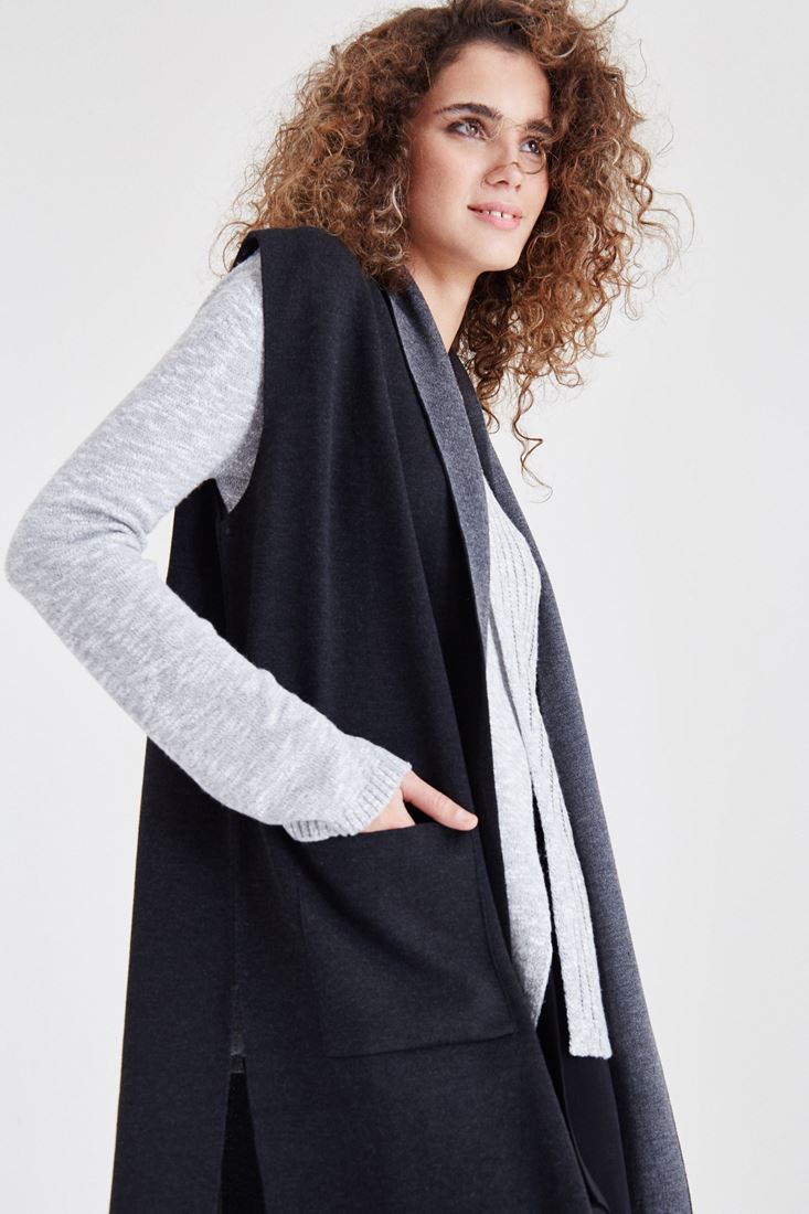 Kis aylarinin vazgeçilmezi olan triko yeleklerin bu sene boylari uzadi. Genis yaka detayi sayesinde bu yelek, sik bir görünüm elde etmekte. Kis aylarinda etek ve pantolonlarla kombinlenebilecegin gibi, bu ürünü elbise modelleri ile de rahatlikla kombinleyebileceksin.