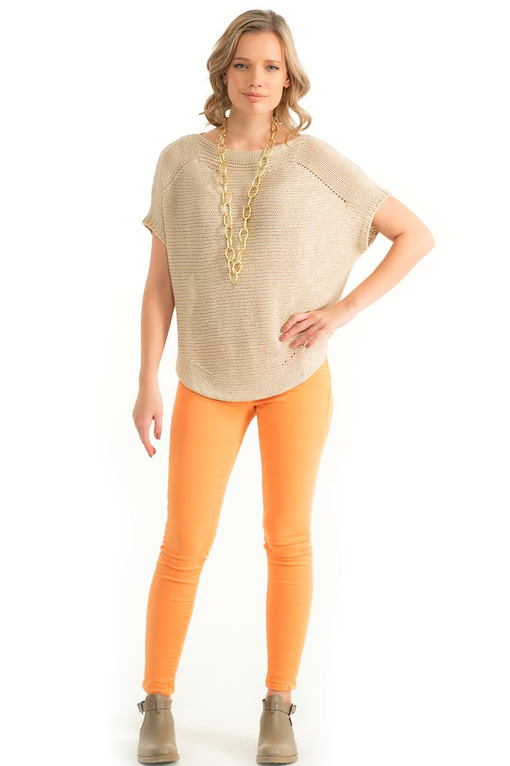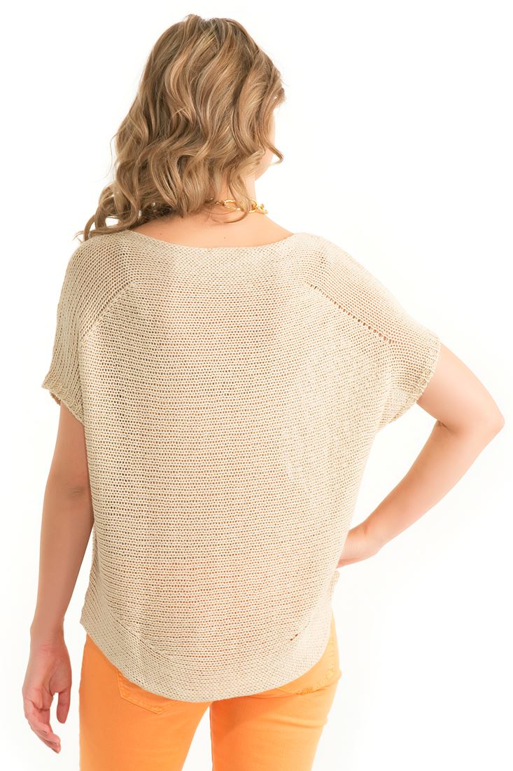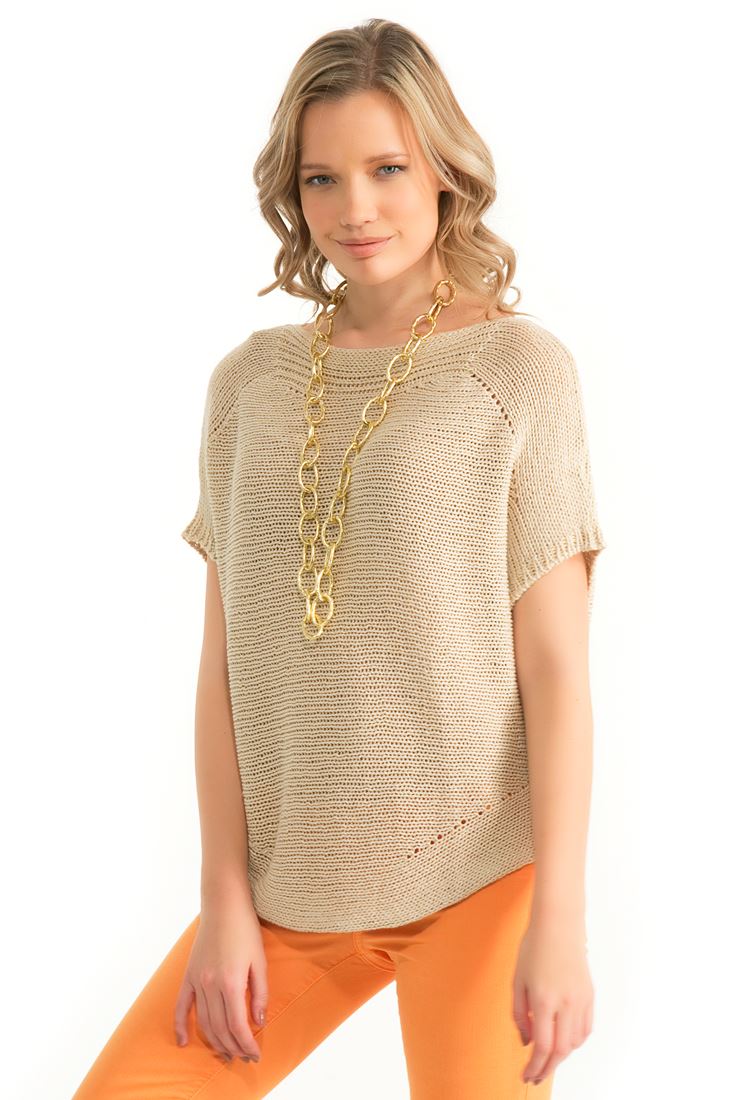 Kayık yaka, düşük kol, simli kazak.