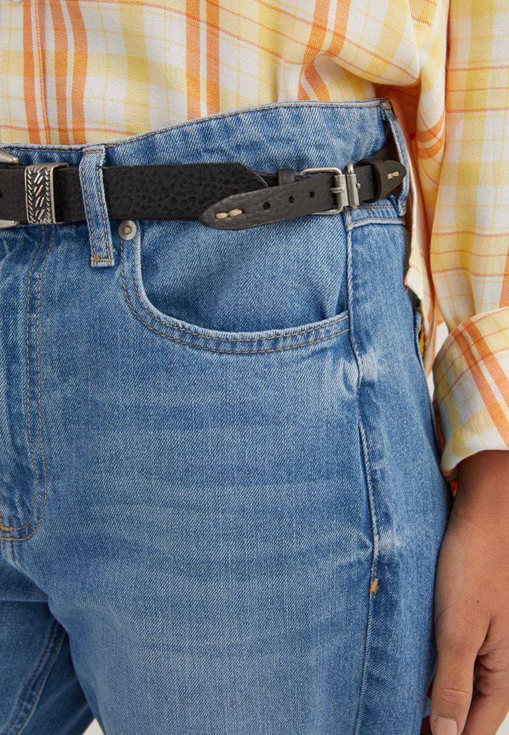 Siyah Trok Detaylı Kemer