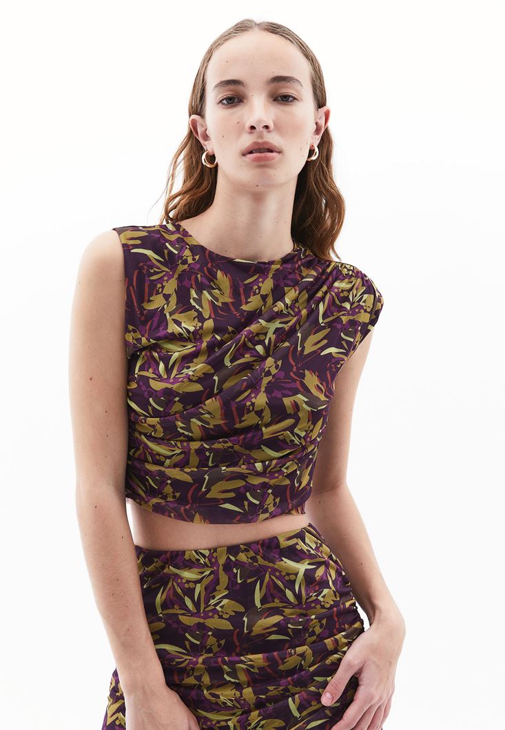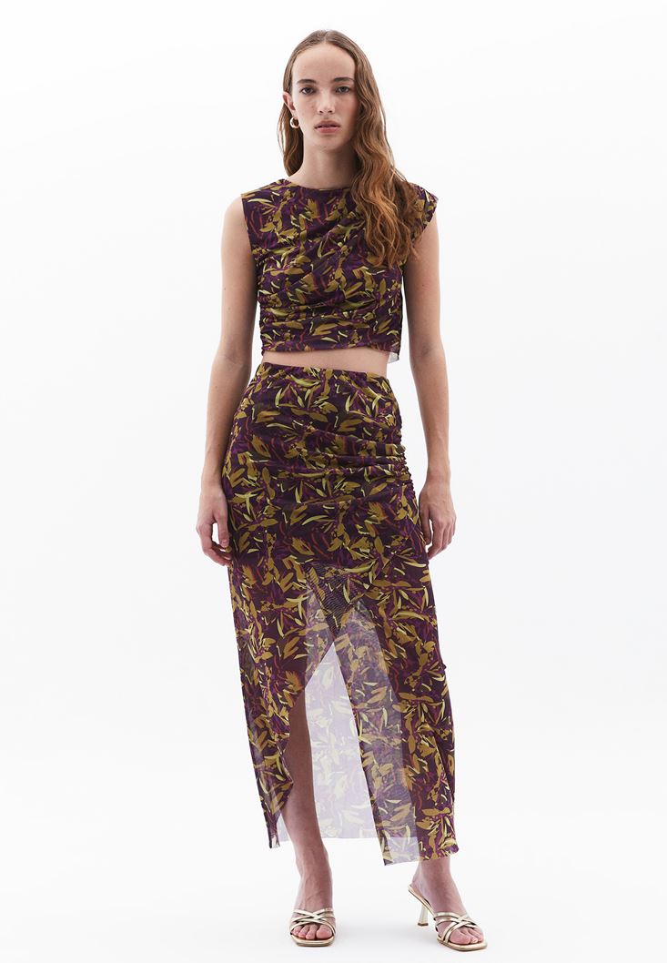 • Bayan Çok Renkli Tül Detaylı Crop Top