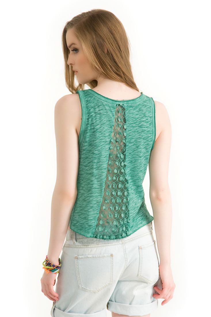 • Bayan Yeşil Tül Detaylı Kısa Bluz
