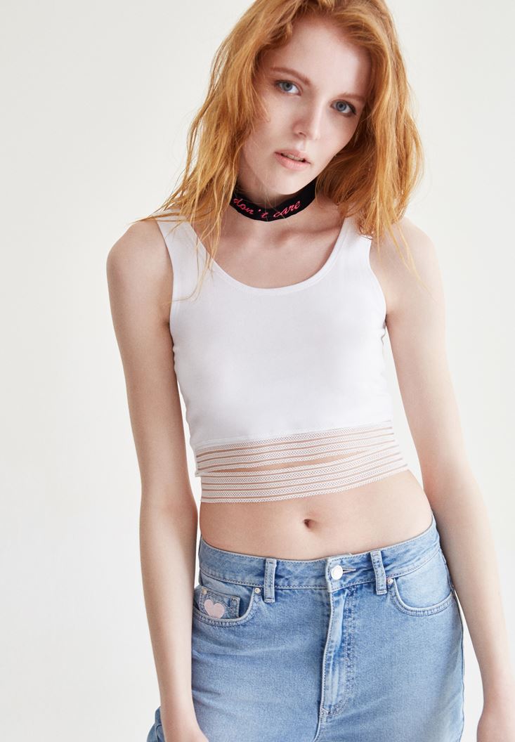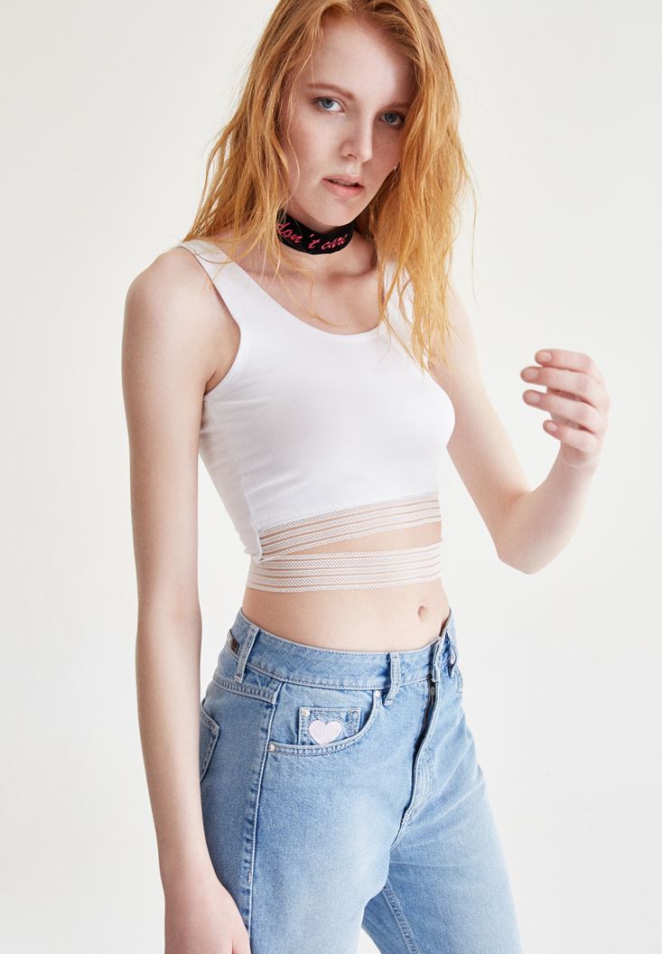 Tül Detaylı Kolsuz Yarım Bluz