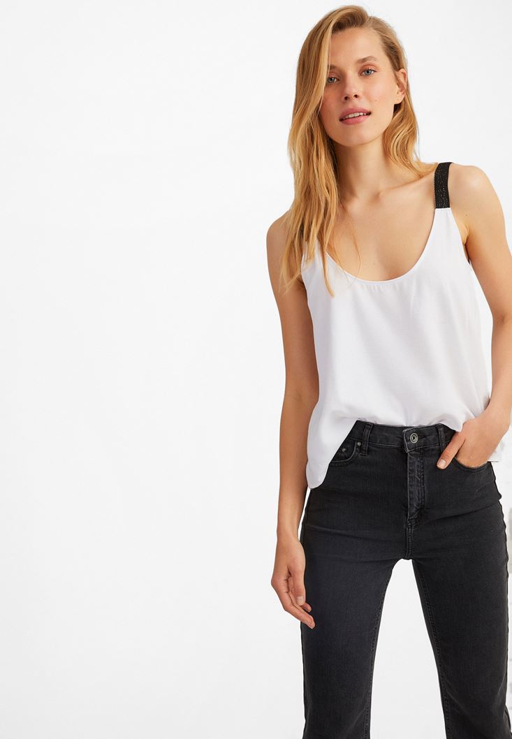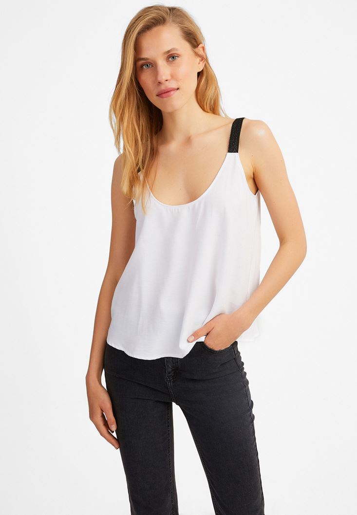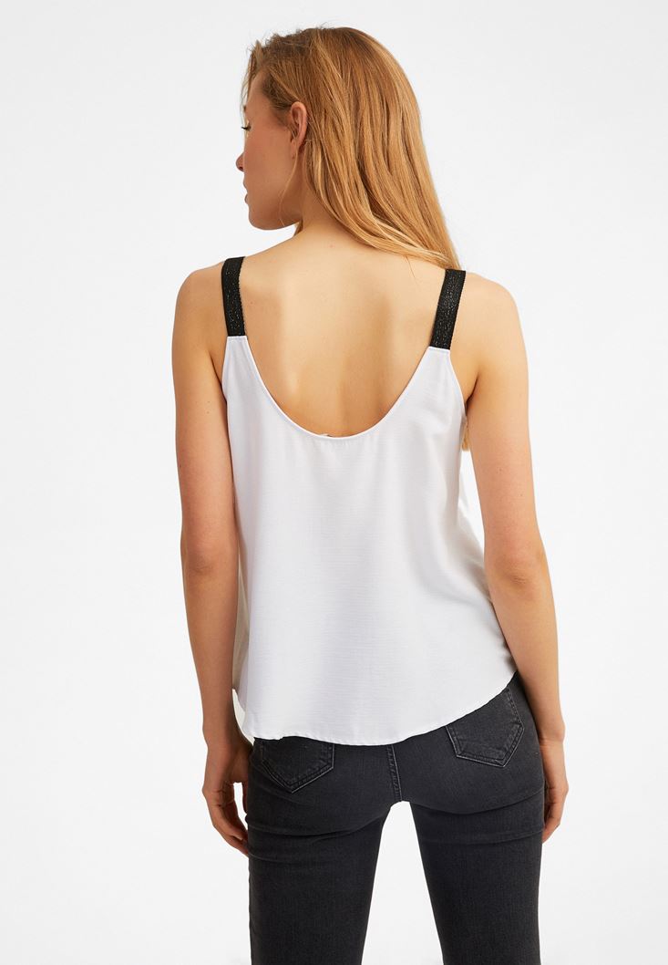 Beyaz U Yaka Askılı Bluz
