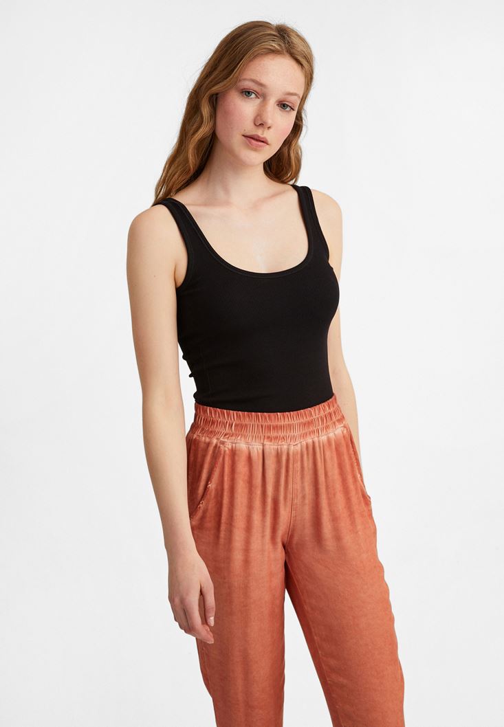 U Yaka Atlet modeli spor kesimi ve konforlu dokusu ile günlük, spor, sokak modası ve ofis şıklığında rahatlıkla tercih edebileceğiniz kurtarıcı bir parça olacak. U yaka kesimi ile zarif ve dikkat çekici bir boyun dekoltesini ön plana çıkaran bu sade tasarımı dilerseniz farklı boyun aksesuarları ile hareketlendirebilir, özgün tarzınıza uygun hale getirebilirsiniz. Orta kalınlıktaki askıları, askı ve yaka çevresinde kullanılan dikişli biye detayı sayesinde vücutta oldukça güçlü bir duruşa sahip olan kadın atlet modeli sahip olduğu dokusu ile de beğeninizi kazanacak. Pamuk lifinin nefes alan yapısı ve yüksek nem transfer etme özelliği sayesinde gün boyu konforunuzu koruyan kadın atlet modeli, OXXO’nun sadelikten gelen şıklığı hareket özgürlüğü ile bir araya getiren tasarımları arasında yer alıyor.