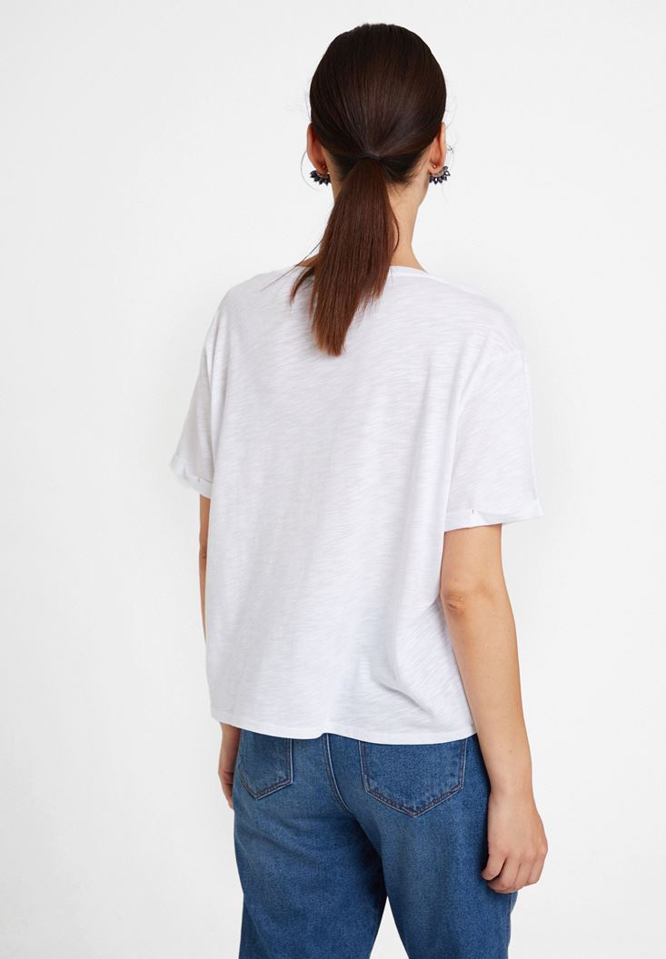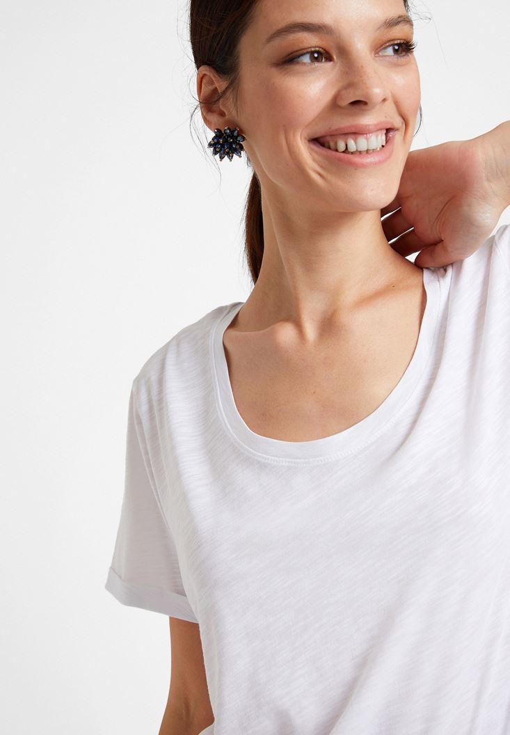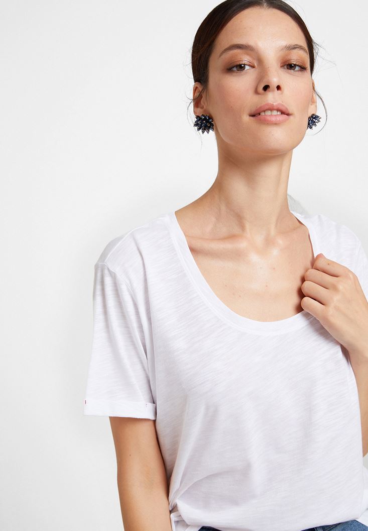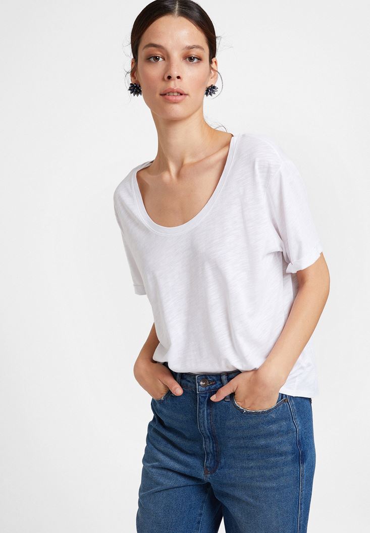 Beyaz U Yaka Basic Modal Karışımlı Tişört