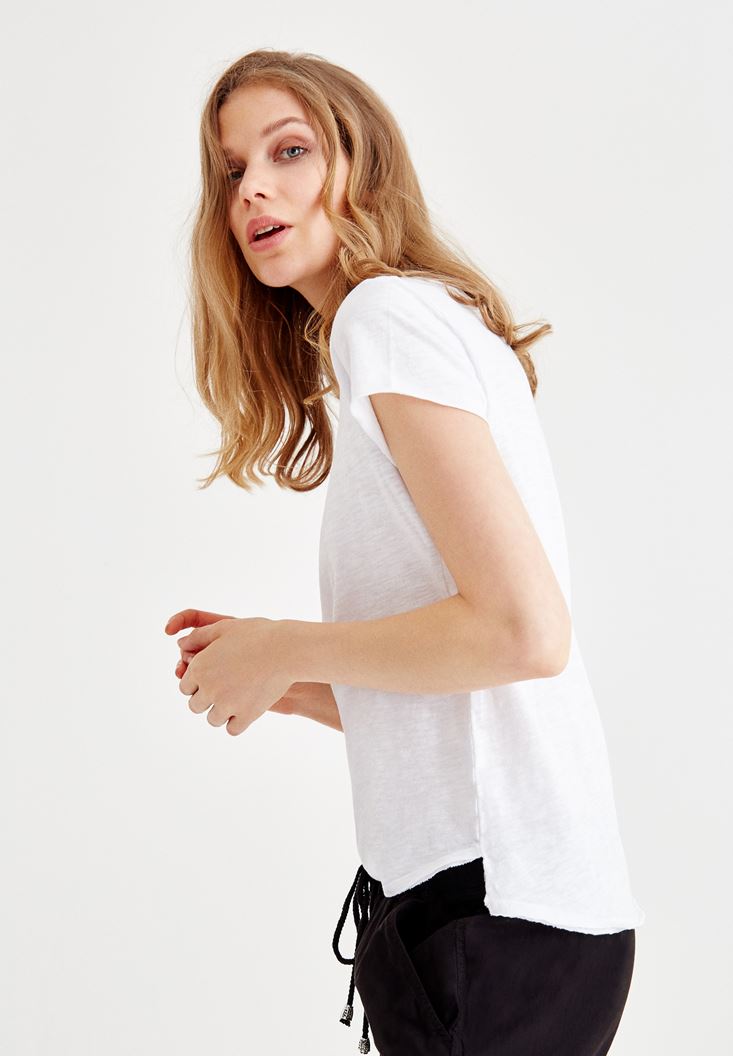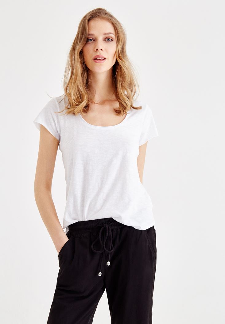 Beyaz U Yaka Basic Tişört