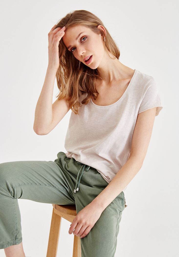 U Yaka Basic Tisört modeli sahip oldugu rahat kesimi ve yumusak dokusu ile her zaman kombinlerinizde yer vermekten keyif alacaginiz tisört modellerinden birisi olacak. Açik yaka kesimi ile oldukça hos bir boyun dekoltesi ortaya çikaran tisört modeli bu sayede sal, fular ya da kolye gibi aksesuarlar ile tamamlanabiliyor. Sahip oldugu pamuk dokusu ile uzun süreli kullanimda da yüksek konfor sunan tisört modeli bu dokunun sundugu yüksek nem emicilik sayesinde hareket özgürlügünü basarili bir sekilde ön plana çikariyor. Günlük ve spor kombinlerinizde her zaman tercih edebileceginiz, ufak aksesuar dokunuslari ile ofis sikliginizda da rahatlikla yer verebileceginiz tisört modeli, OXXO'nun sadelikten aldigi ilhami basarili bir sekilde yansitiyor.