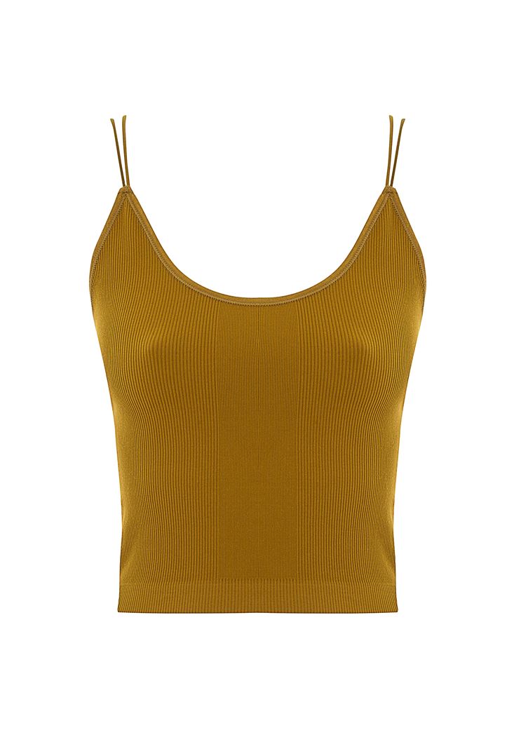 • Bayan Kahverengi U Yaka Dikişsiz Crop Top