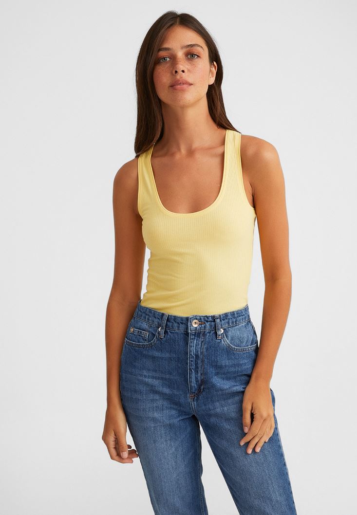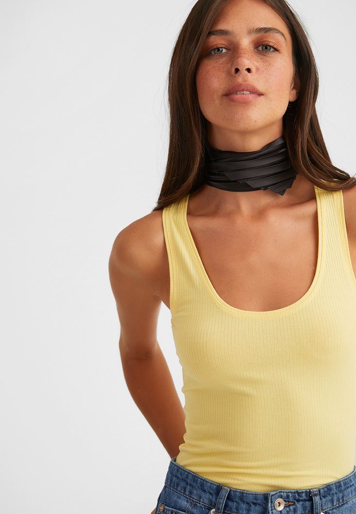 • Bayan Sarı U Yaka Kalın Askılı Bluz