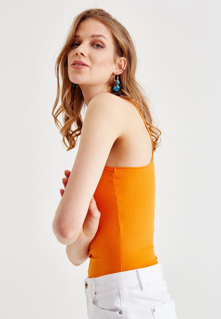 • Bayan Turuncu U Yaka Kalın Askılı Bluz